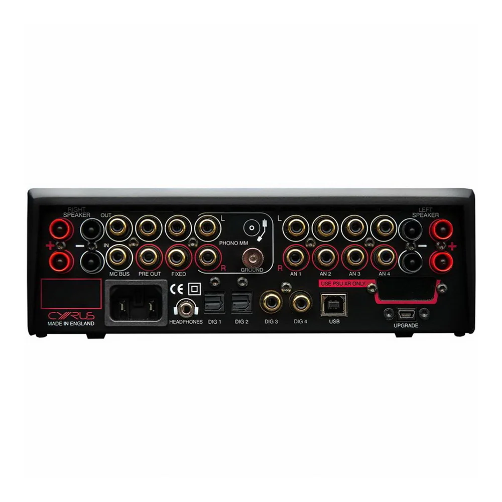 I9-XR оснащен разъемом для подключения нового блока питания PSU-XR. Тридцать лет назад компания Cyrus открыла новые горизонты, представив PSX-R - первый в мире регулируемый источник питания, который автоматически адаптировался к требованиям к питанию любого подключенного устройства. Блок питания PSU-XR поднимает планку за счет использования не менее пяти независимых регулируемых источников питания в одном корпусе. Для i9-XR пара из них предназначена для обеспечения сверхнизкой мощности предусилителя, а вторая пара - для обеспечения мощного динамического усиления усилителя мощности.