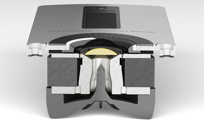 Новаторская магнитная система с линейным приводом (Linear Drive Magnet System), позволяет устранить целых четыре причины нелиненых искажений в динамиках. Отдельные детали магнитной системы, граничащие с звуковой катушкой, выполнены из особого магнито-мягкого компаунда (SMC), который устраняет вариации напряженности магнитного поля в зазоре. SMC-материал обладает высокой линейностью характеристик во всем частотном диапазоне и устраняет также фазовые вариации сил, создаваемых магнитной системой. Алюминиевые кольца на полюсных наконечниках понижают индуктивность звуковой катушки и делают ее независимой от перемещения.