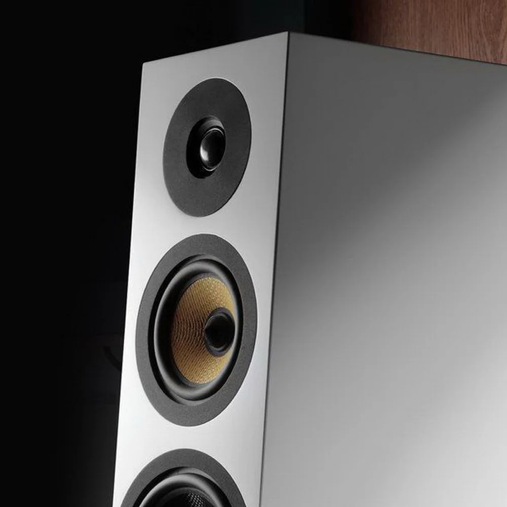 Все динамики спроектированы специалистами Davis Acoustics. Басовая полоса озвучивается 6.5-дюймовым (17 см) драйвером с диффузором из карбонового волокна. Этот материал имеет высокую жёсткость при малой массе, а тканая структура обладает хорошими демпфирующими свойствами. Это означает, что динамик способен работать с минимальными искажениями, не окрашивая звучания. Он работает в фазоинверторном оформлении и отличается линейной характеристикой в диапазоне 40 – 400 Гц. Порт внушительного диаметра выведен вперёд, поэтому колонки можно поставить ближе к стене. Меняя расстояние до неё, удастся подкорректировать характер баса.