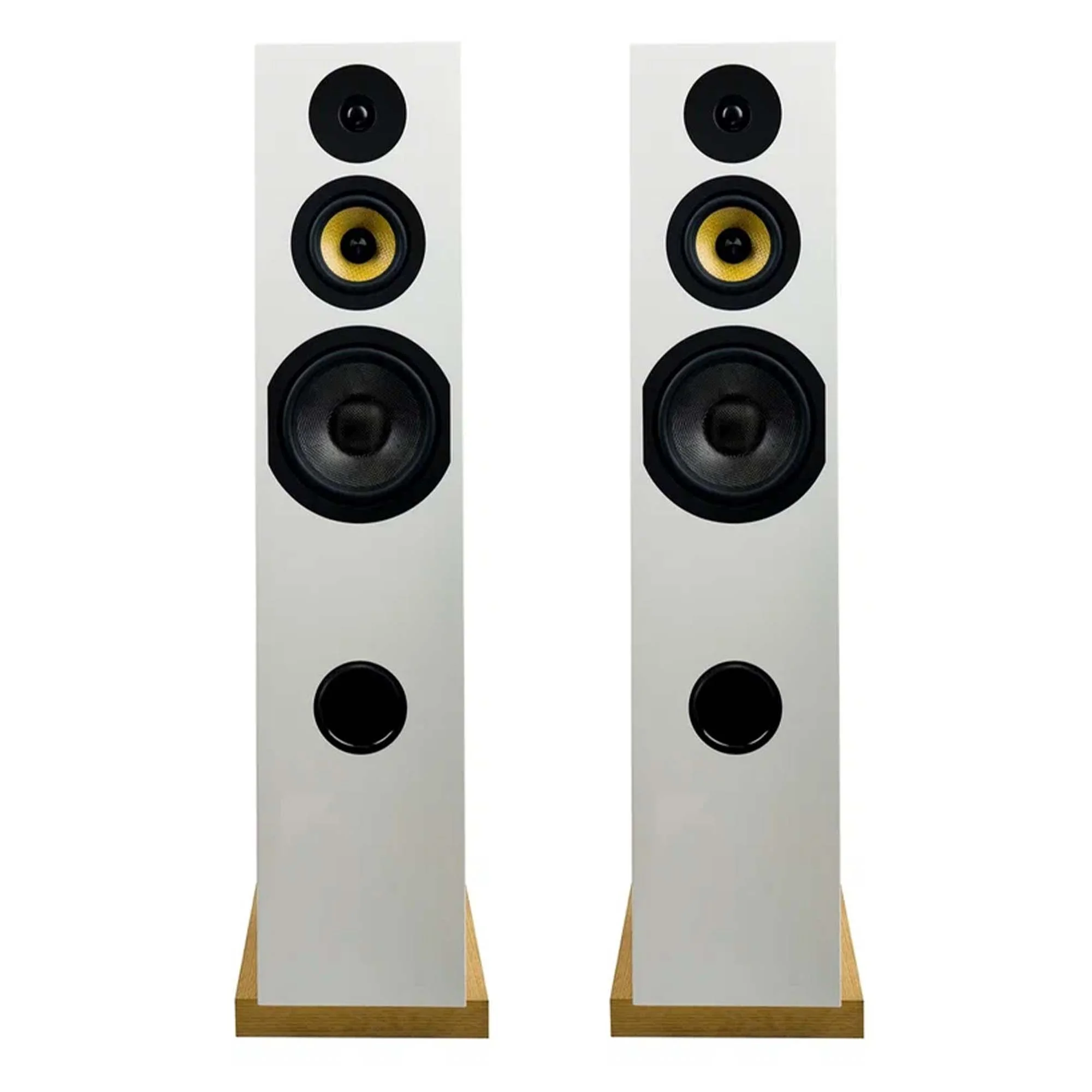 Прежде всего, конструкция это жёсткий корпус из толстых листов MDF, усиленный внутренними стяжками. В основании – массивная плита с резьбовыми втулками для шипов. За счёт небольшого наклона решаются две важные задачи: снижается вероятность возникновения стоячих волн и обеспечивается временное согласование всех трёх полос. При такой компоновке самый медленный, басовый диффузор, оказывается ближе к слушателю, а лёгкий купол твитера – дальше, поэтому фронты воспроизводимого ими сигнала приходят одновременно.