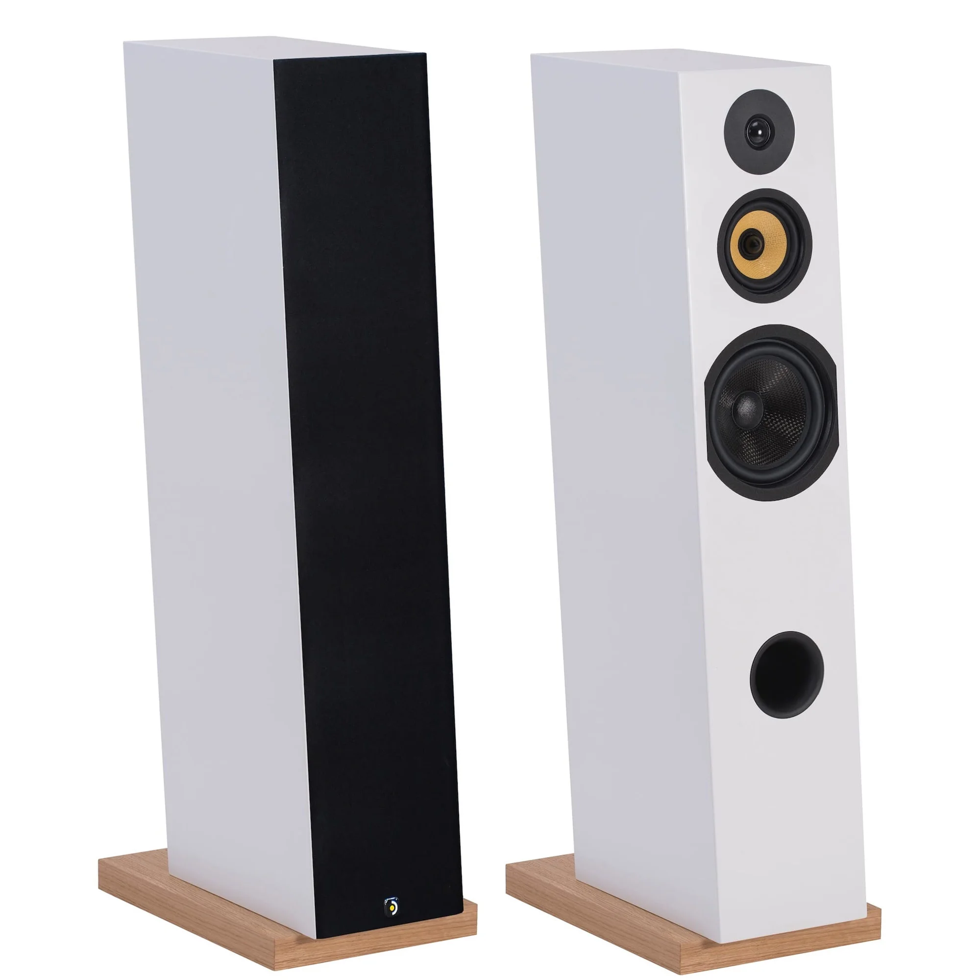 Все динамики спроектированы специалистами Davis Acoustics. Басовая полоса озвучивается 8-дюймовым (21 см) драйвером с диффузором из карбонового волокна. Этот материал имеет высокую жёсткость при малой массе, а тканая структура обладает хорошими демпфирующими свойствами. Это означает, что динамик способен работать с минимальными искажениями, не окрашивая звучания. Он работает в фазоинверторном оформлении и отличается линейной характеристикой в диапазоне 40 – 400 Гц. Порт внушительного диаметра выведен вперёд, поэтому колонки можно поставить ближе к стене. Меняя расстояние до неё, удастся подкорректировать характер баса.