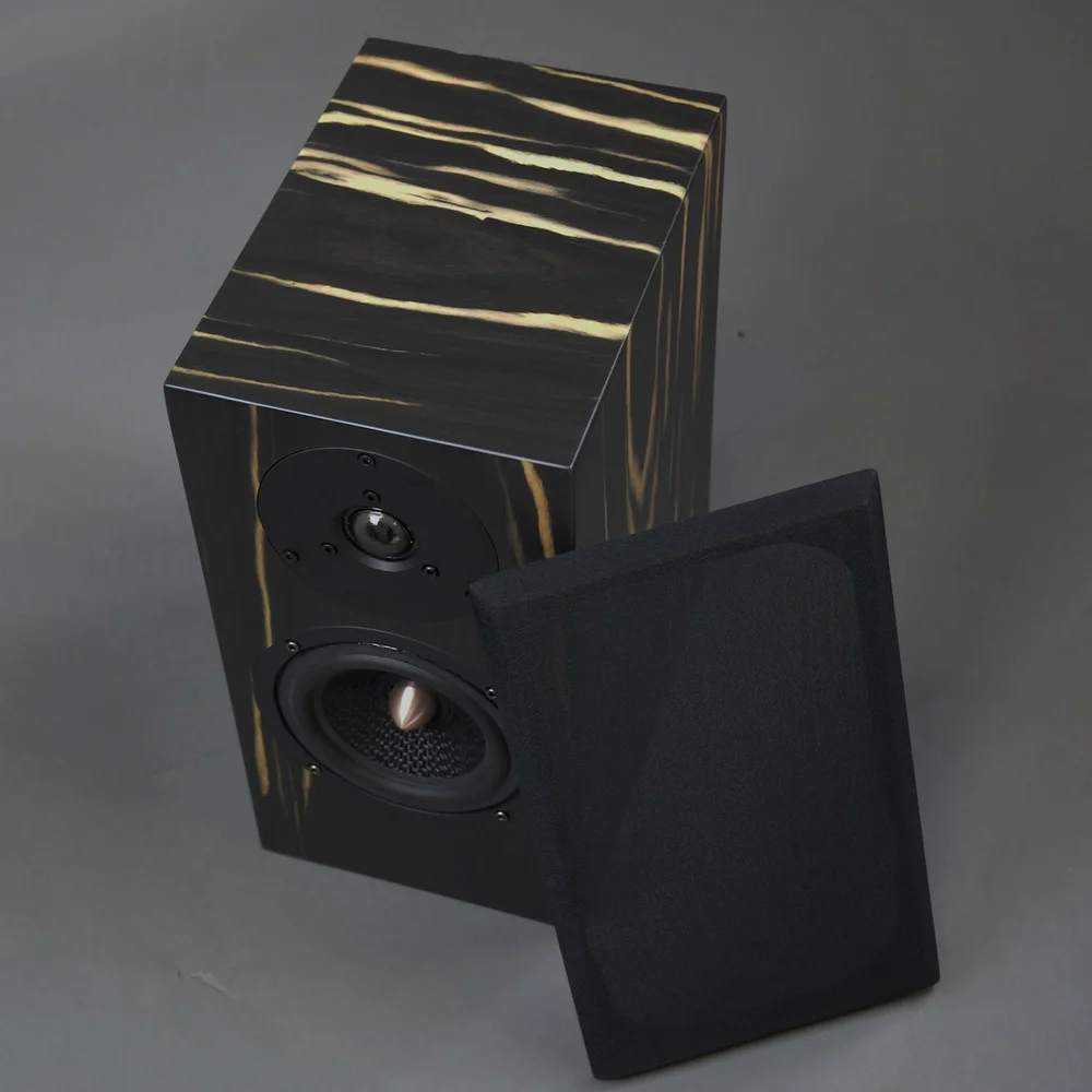 Акустическая система выпускаются в качественно демпфированном корпусе из прочных плит ДВП. Немного изогнутые боковые панели с внутренними стяжками гарантируют отсутствие стоячих волн и паразитных резонансов. Колонки имеют миниатюрные размеры 350 х 260 х 180 мм при весе всего 4 кг, что позволяет удобно размещать их на полку, но более высокие акустические способности громкоговорители демонстрируют при установке на специальные напольные стойки.