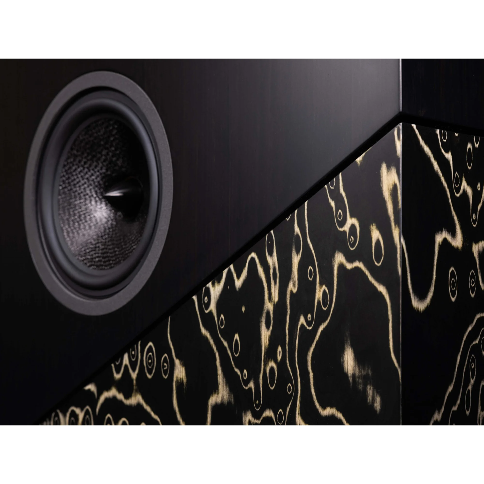 Два низкочастотных 21-см (8″) динамика из углеродного волокна установлены в конфигурации пуш-пул спиной друг к другу для впечатляющего баса. Один 20 см (8″) широкополосный кевларовый динамик с магнитом TiCoNal (Alnico). 25-мм (1″) фирменный конусный твитер с металлическим рассеивателем. Вы можете расположить их индифферентно.