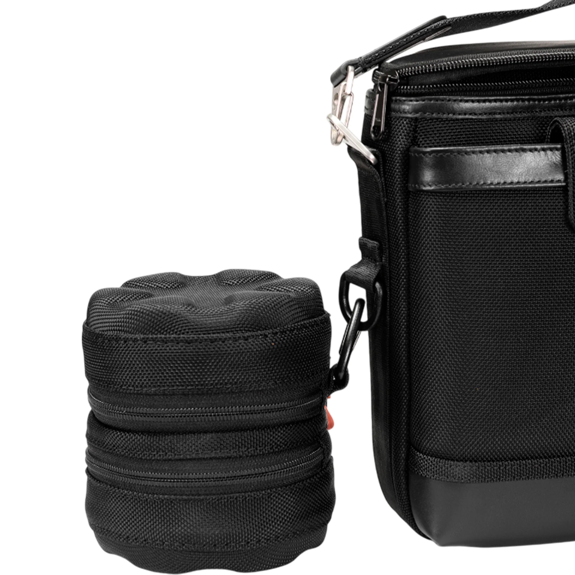 Кейс выполнен с твёрдой основой и мягкими вставками, что обеспечивает дополнительный комфорт при переноске. Внешние стороны покрыты высокоэластичным материалом, который не только защищает кейс от царапин, но и придаёт ему эстетичный внешний вид.