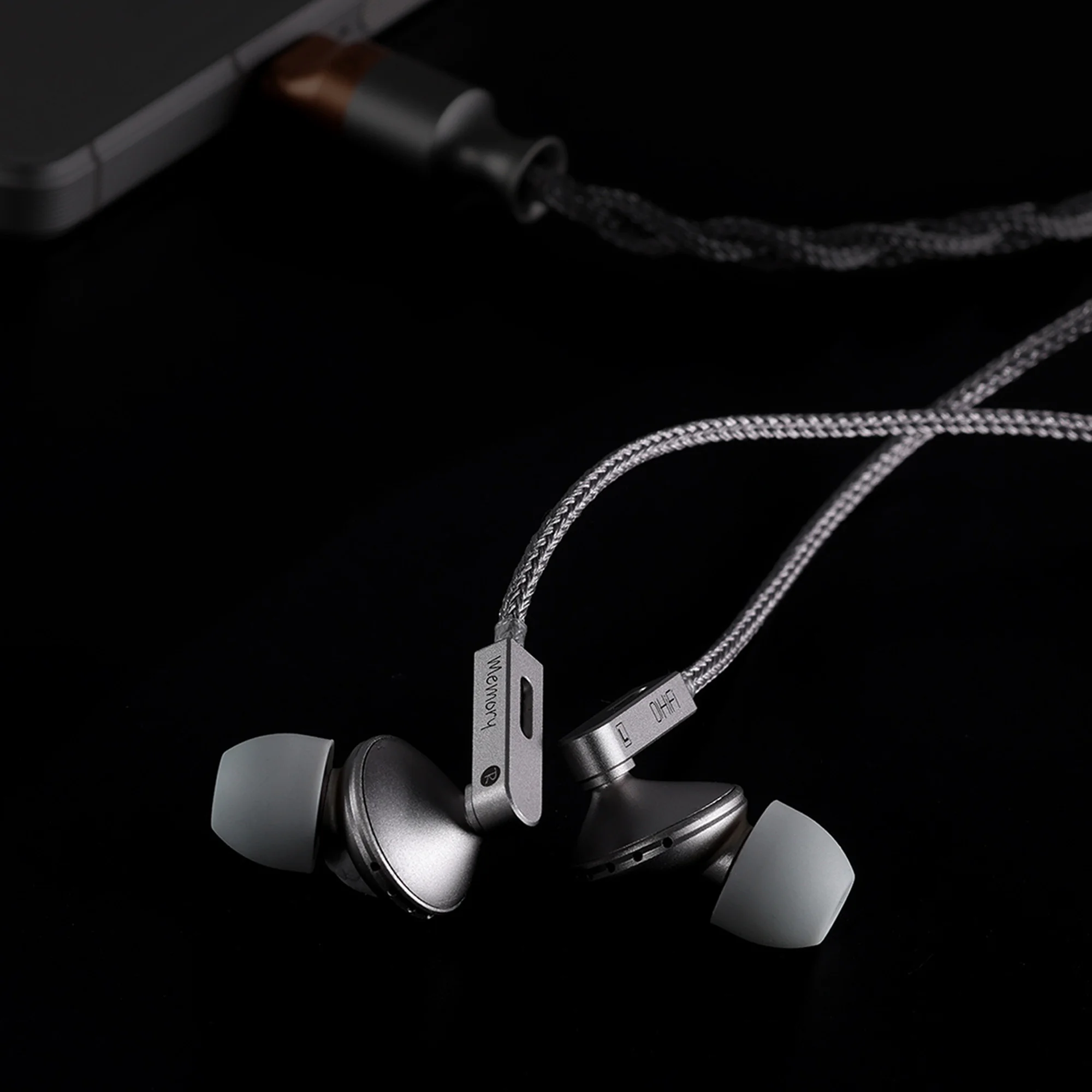 dHiFi E13P (Memory) - проводные наушники-вкладыши с магнито-планарным динамиком. Проводные наушники, совместимые с устройствами USB–C. Memory - это пара наушников, выполненных в форме полукруга и оснащенных звуковой трубкой с боковым расположением в паре с ушными наконечниками, что делает их гибридом наушников-вкладышей и полукруглых вкладышей. Несмотря на наличие 13-миллиметрового динамика, его ультракомпактный дизайн обеспечивает комфортное ношение даже пользователям с маленькими ушами.