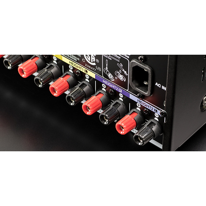 - выходы: 3 HDMI (2.0), 2 выхода на сабвуферы, 11.2 канальный выход, Pre-Out на вторую зону, 6,3 мм гнездо для наушников;