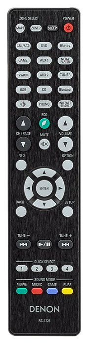 - коммутация: RS232, Ethernet, Denon Link HD, вход/выход внешней системы управления, мини-джек для калибровочного микрофона, гнезда для антенн Wi-Fi (2) и AM и FM, клемма заземления;