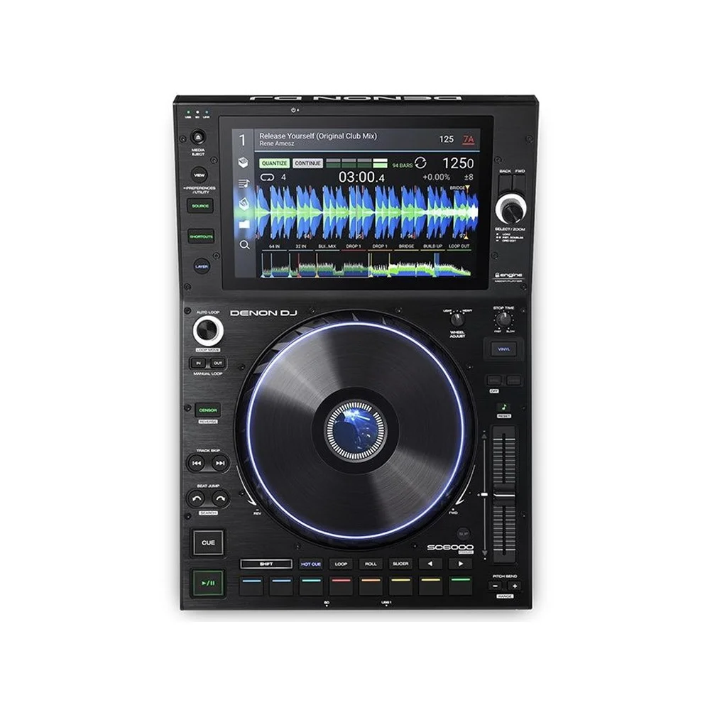 Denon SC6000 Prime - флагманский профессиональный автономный DJ проигрыватель, оснащенный ОС ENGINE и способный осуществлять двухслойное воспроизведение через два независимых аналоговых/цифровых выхода. Медиаплеер оборудован большим 10.1” HD сенсорным дисплеем, поддерживающим мультитач жесты. Дисплей позволяет работать с большими библиотеками, редактировать списки, производить манипуляции с формами волны и даже анализировать файлы, при этом не теряя из виду рабочую информацию. 8,5” джог-колесо имеет большую по сравнению с предыдущими моделями площадь поверхности для скретча и манипуляций с питчем или cue. Можно настраивать ощущение тяжести или инерции колеса, а также кастомизировать дисплей в центре и LED подсветку по окружности.