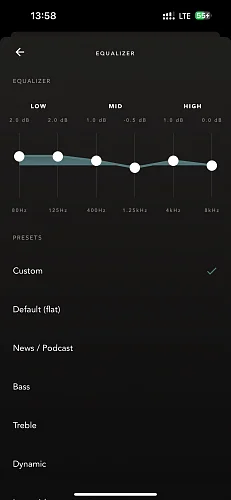 Приложение Devialet Gemini¹ позволит вам полностью раскрыть потенциал наушников Devialet Gemini II. Благодаря быстрому сопряжению по Bluetooth² и интуитивно понятному интерфейсу вы сможете с легкостью переключать режим прозрачности, тщательно настроить 6-ти полосный эквалайзер (самостоятельно или используя «пресеты»), а также посмотреть уровень заряда аккумулятора как наушников, так и зарядного футляра.