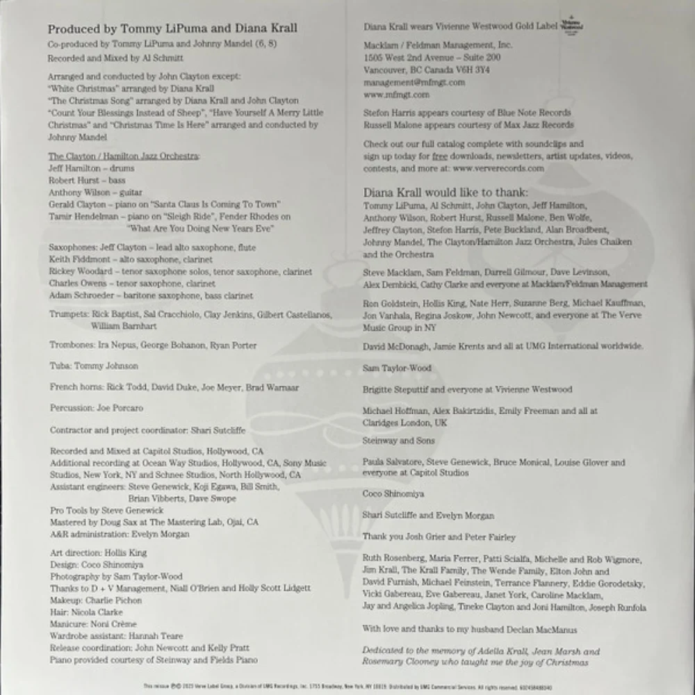 Погрузитесь в атмосферу тёплого рождественского чуда с великолепным альбомом «Christmas Songs», который объединил изысканный вокал Дианы Кралл и неповторимое звучание The Clayton-Hamilton Jazz Orchestra. Этот релиз, вышедший 26 октября 2005 года на легендарном лейбле Verve Records, стал настоящим подарком для ценителей джаза и классических рождественских мелодий.