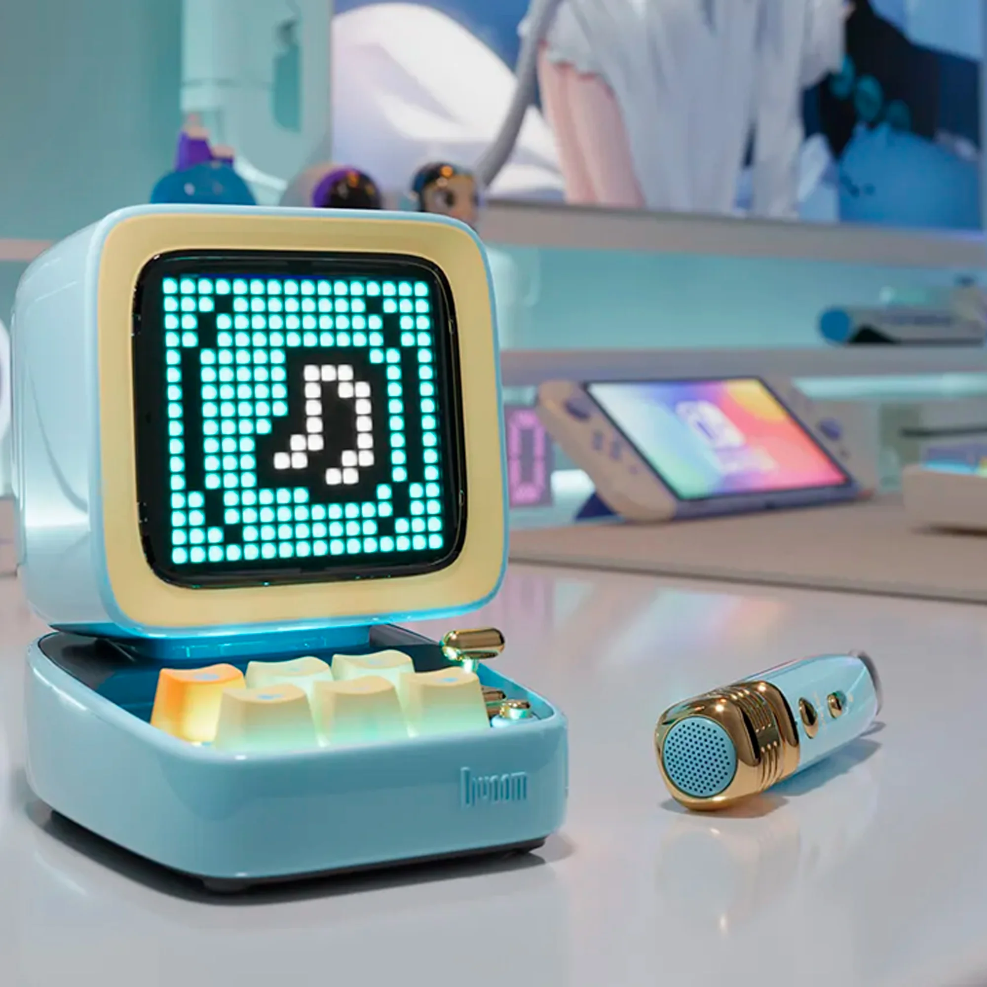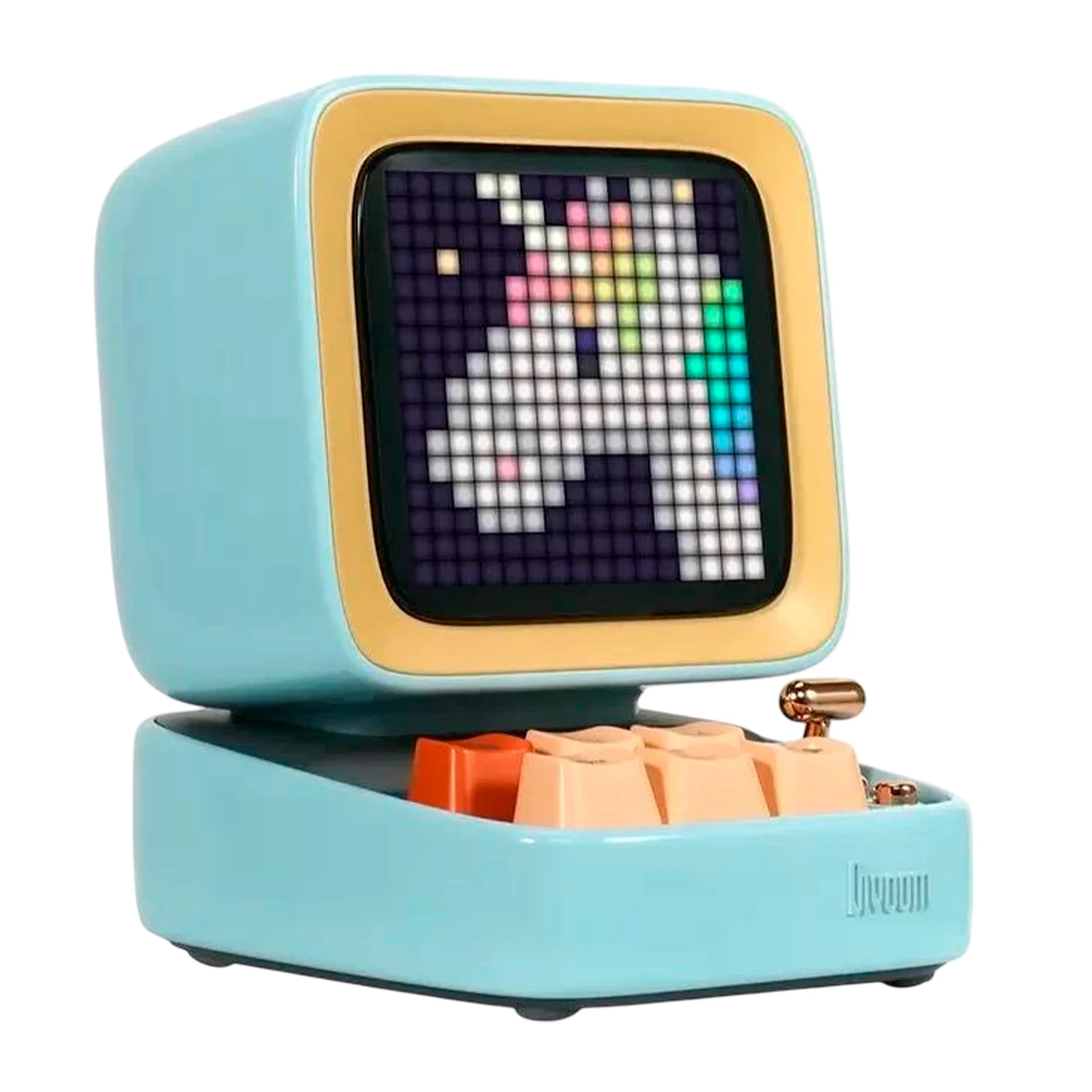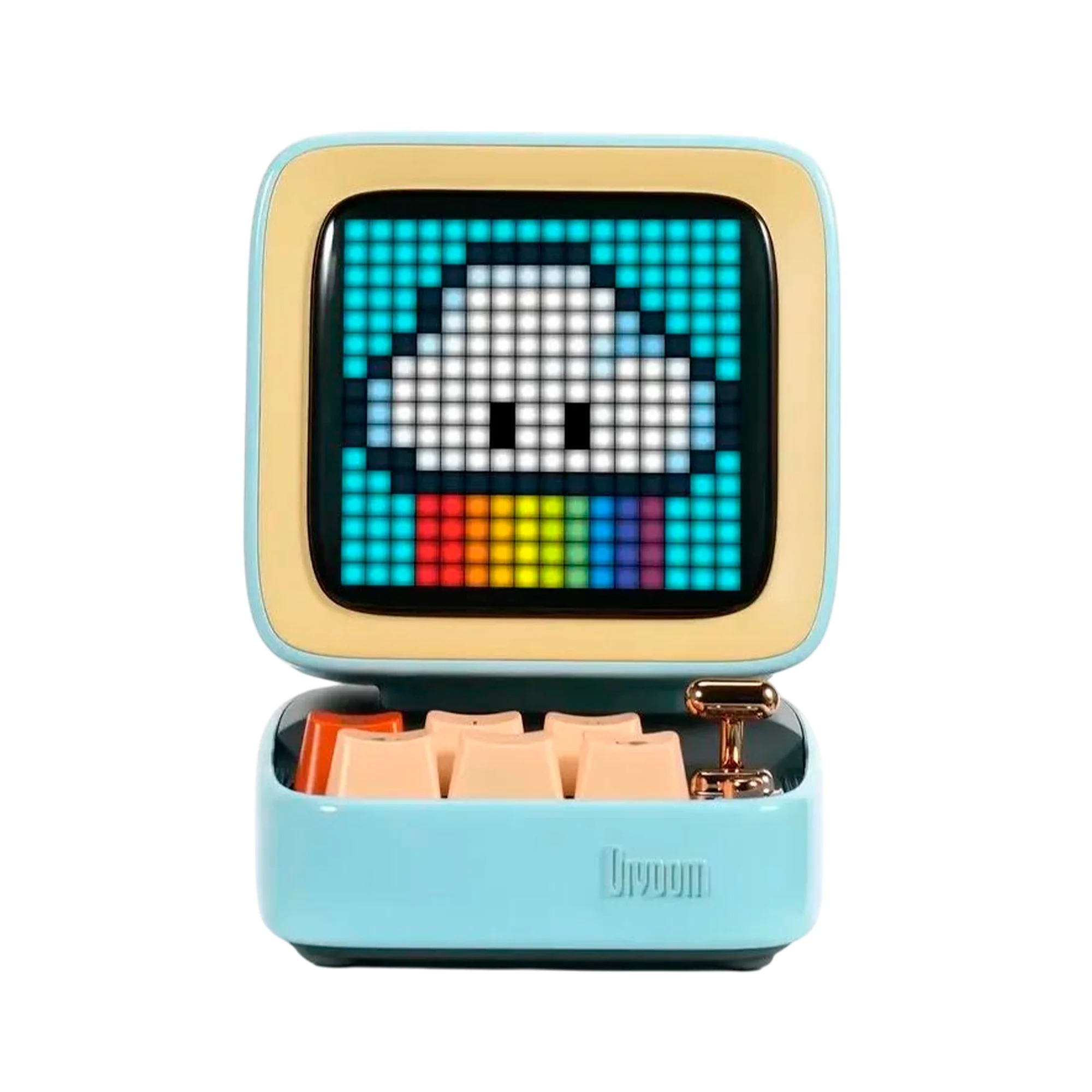 Divoom Ditoo-5M — это не просто колонка, а настоящий мультимедийный центр в стиле ретро. Миниатюрный корпус напоминает старый компьютер, а анимированный пиксельный дисплей позволяет создавать арт, играть и получать уведомления. Стильный дизайн, качественный звук и море функций — всё в одном компактном устройстве!
