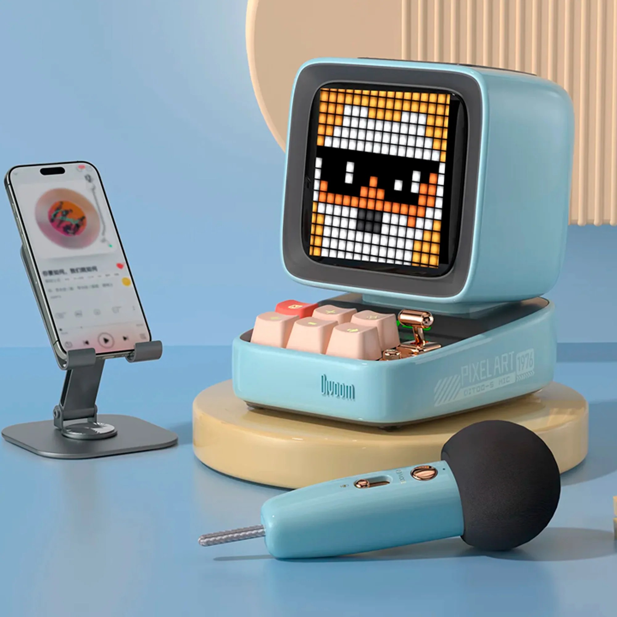 Колонка предлагает 7 режимов караоке, включая студийный вокал, робота, детский голос и поп-эффект. Вы можете регулировать громкость на микрофоне и использовать специальное приложение Divoom для заглушения вокала в композициях. Пиксельный экран позволяет создавать рисунки и анимации, добавляя индивидуальности вашему звучанию.