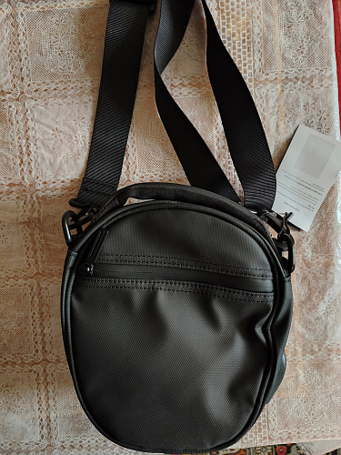 Сумка имеет плечевой ремень на карабинах, передний карман с карабином для ключей и задний карман для документов. На боковой части предусмотрены два выхода для USB и аудио выход jack 3.5mm (мини jack), в сумке используются водооталкивающие молнии. Два внутренних кармана сеточки, один на молнии для хранения не больших предметов (переходники, флешь карты и т.д.), второй карман по больше, на резинке, для принадлежностей, к которым нужен быстрый доступ.