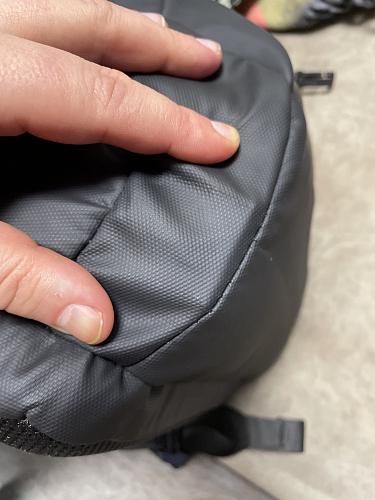 - при первичном использовании или если рюкзак смят был при транспортировке или длительном хранении, необходимо максимально плотно его набить вещами или оборудованием и подвесить за ручку на 24 - 48 часов. Ткань эластичная и примет заданную форму;
