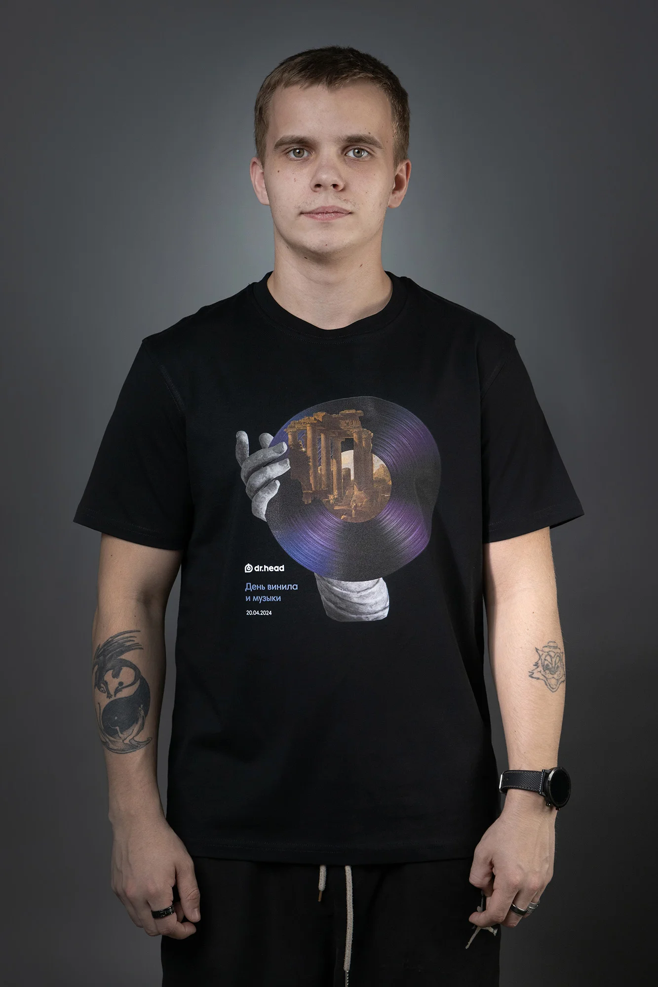 Лимитированная футболка Dr.Head выпущенная в честь Дня винила и музыки! Эта футболка создана специально для тех, кто любит чистоту звучания винила и хочет выразить свою преданность этому музыкальному носителю.