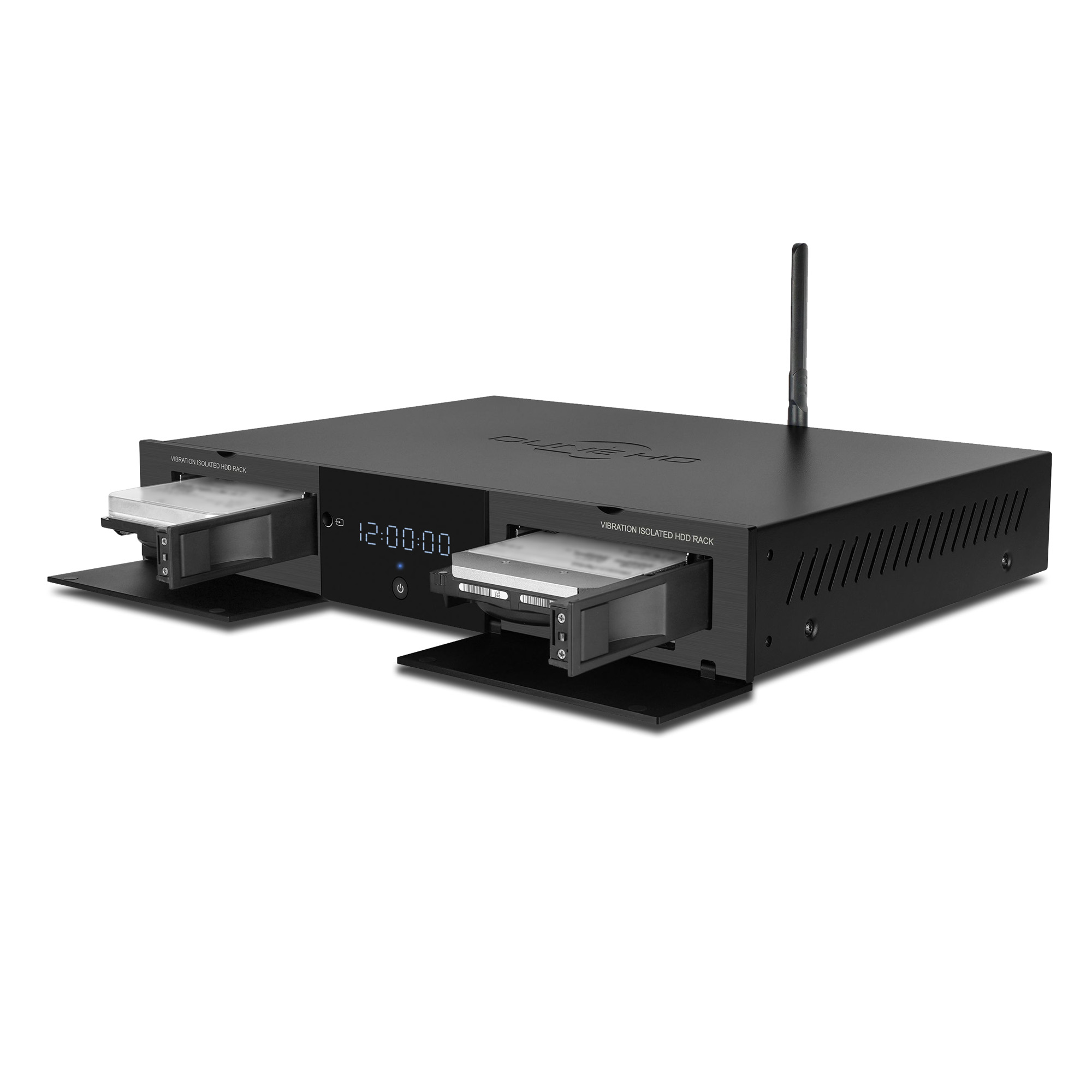 Полноразмерный корпус со стильной брашированной алюминиевой передней панелью. Отсек для 3.5” SATA жесткого диска на виброизолированном шасси, с поддержкой жестких дисков до 20 ТБ и более, с возможностью горячей замены. Доступ к жесткому диску также можно получить из локальной сети с помощью встроенного SMB файл-сервера.