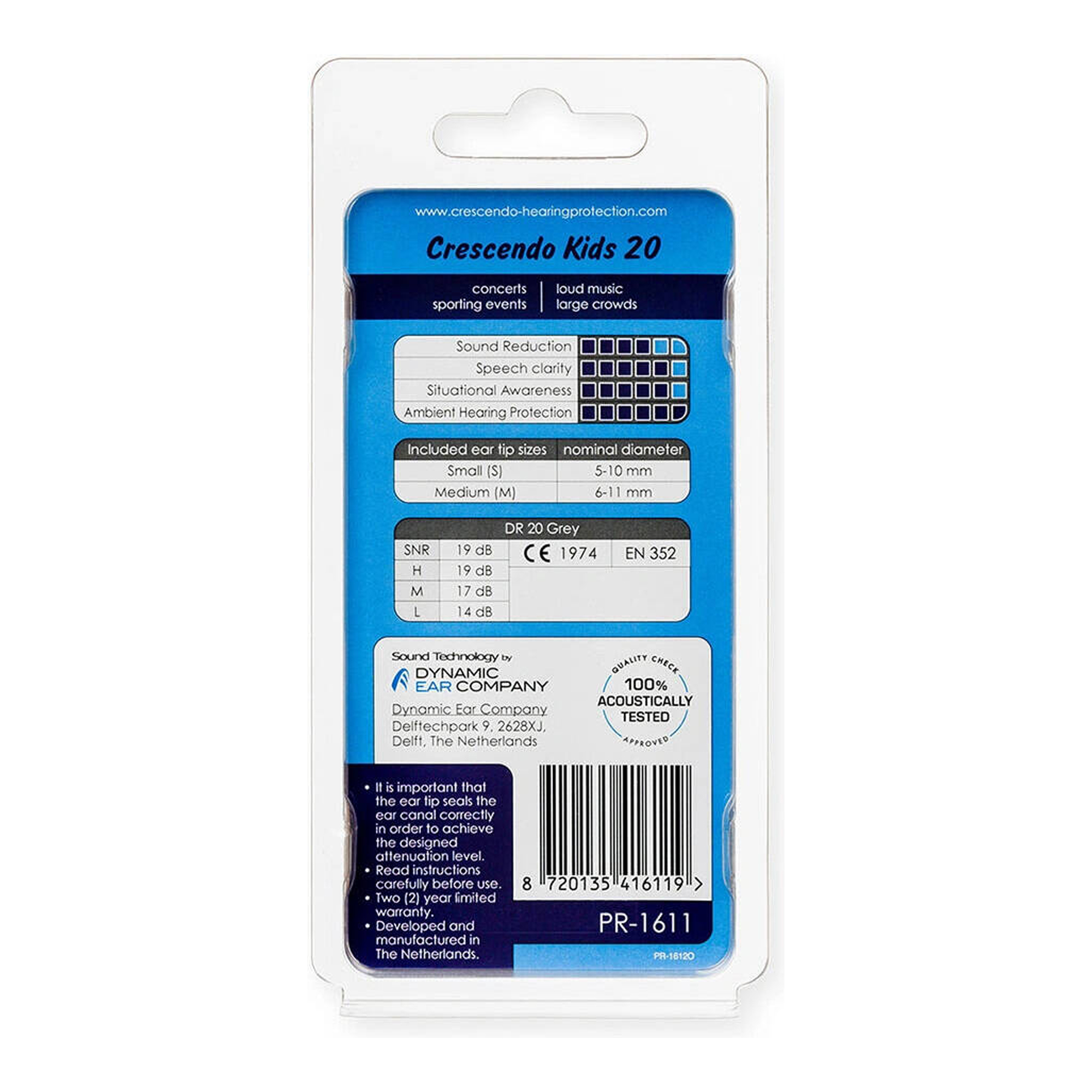 Беруши Crescendo Kids поставляются с гипоаллергенными ушными вкладышами и сложными акустическими фильтрами, которые легко помещаются в ушной канал ребенка, обеспечивая плотную и герметичную посадку. Запатентованная технология мембранного фильтра обеспечивает защиту и чистоту звука.
