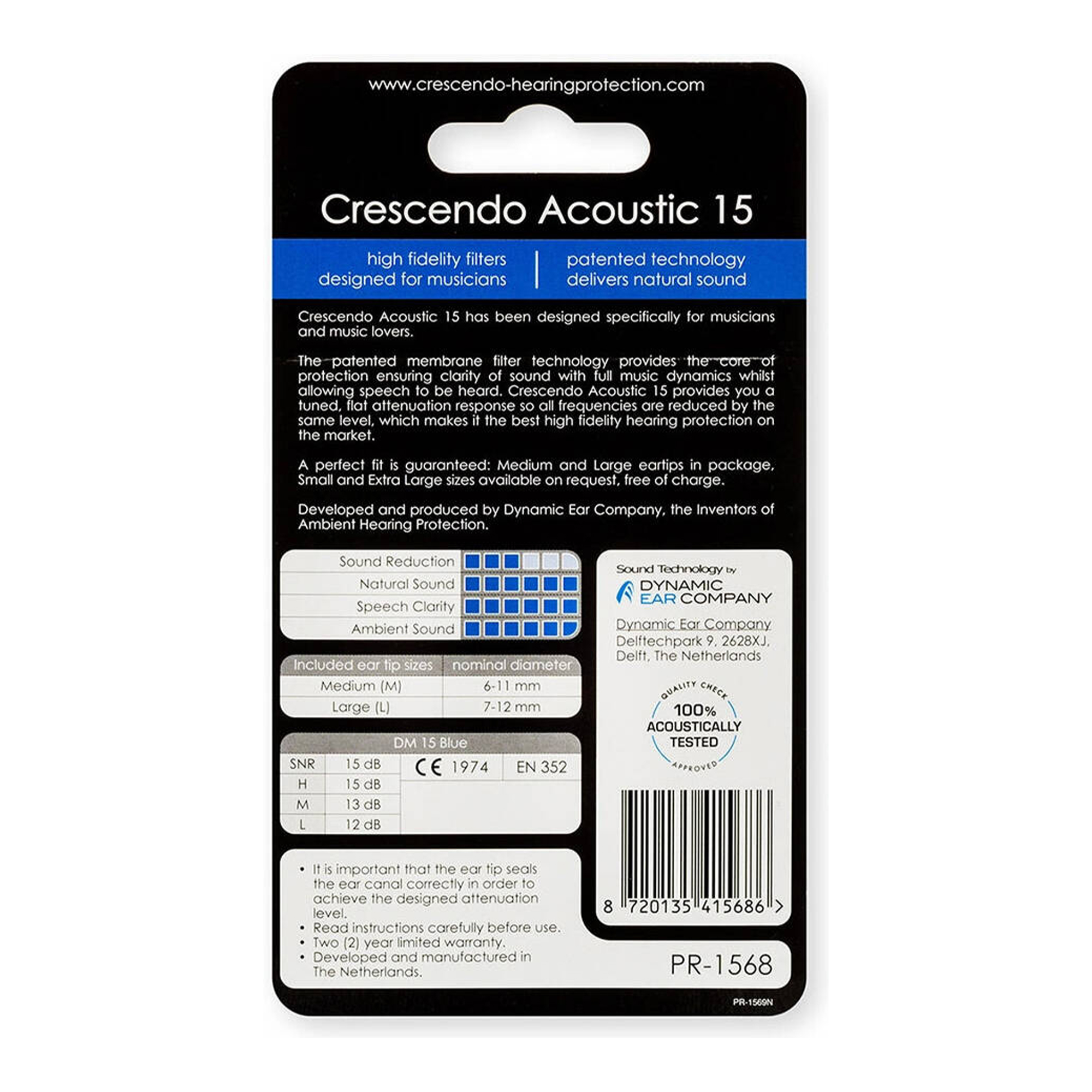 Crescendo PRO — Acoustic 15 был разработан специально для музыкантов и меломанов. Беруши Crescendo Pro Acoustic 15 созданы для тех, кто ценит чистоту звука так же высоко, как и безопасность своего слуха. Запатентованная технология мембранного фильтра обеспечивает защиту и чистоту звука с сохранением всей музыкальной динамики.
