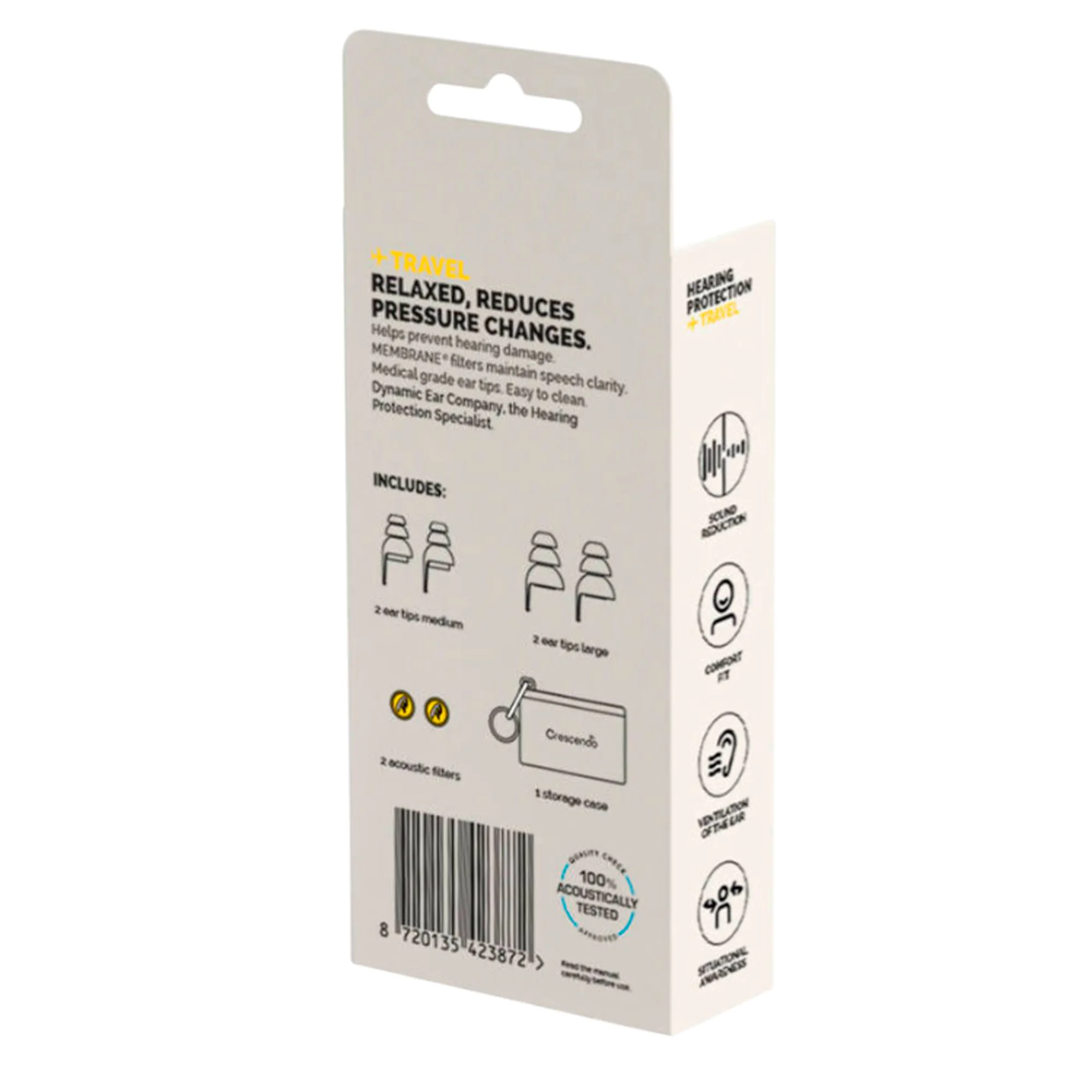 Crescendo Travel - это универсальные защитные наушники с регулировкой давления, разработанные специально для полетов. Передовая мембранная технология снижает фоновый шум, а также регулирует давление воздуха во время взлета и посадки.