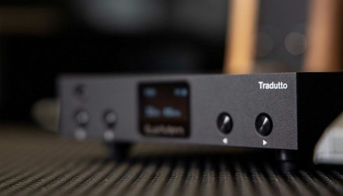 На первый взгляд, Tradutto — это небольшой ЦАП, однако он увесистый (550 грамм) и прочный. Почти весь корпус, за исключением нижней панели, изготовлен из алюминия с матовой черной отделкой в индустриальном стиле, а слово Tradutto выгравировано на верхней его части. Компактный дизайн делает Earmen Tradutto подходящим для любой домашней обстановки. Печатная плата встроена в прочный алюминиевый корпус, обеспечивающий повышенную защиту платы внутри корпуса и дополнительную изоляцию от внешних воздействий.
