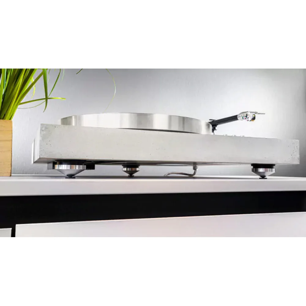 Бетон — это материал, который используется в мире Hi-Fi довольно редко. Некоторые разработчики выбирают его при создании акустических систем, и, конечно же, для изготовления стоек для полочной акустики. Возможно, выбор бетона в качестве материала для проигрывателя виниловых пластинок случился впервые в истории. В European Audio Team утверждают, что выбор бетона для шасси проигрывателя EAT C-Dur Concrete это больше, чем дизайнерское решение; в этом контексте компания говорит о технической целесообразности. Благодаря своим особым свойствам, таким как высокая плотность и, в конечном итоге, большая масса, бетон обладает отличными демпфирующими свойствами и, таким образом, предотвращает возникновение вибраций или резонансов. К слову, вес проигрывателя EAT C-Dur Concrete составляет 32 кг.
