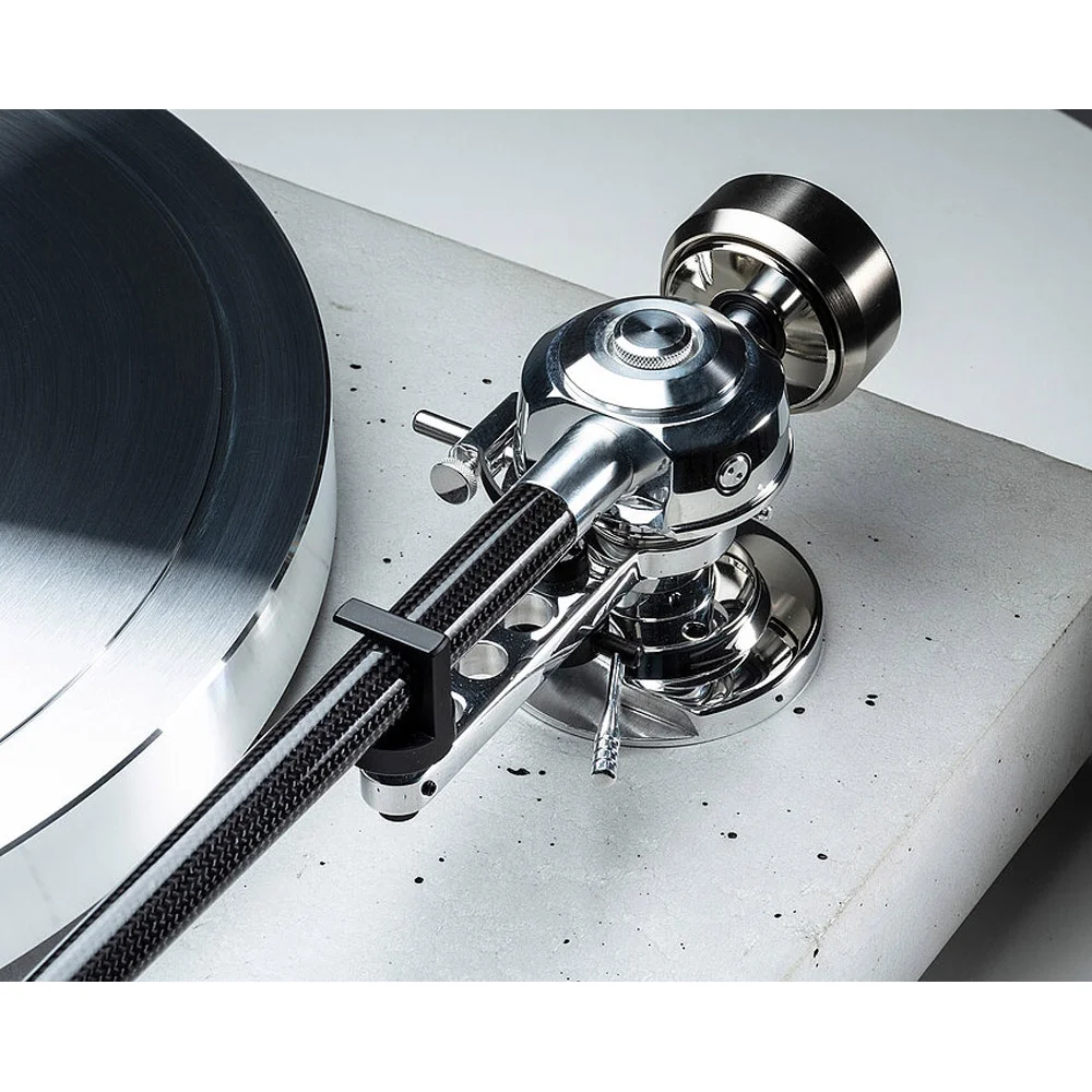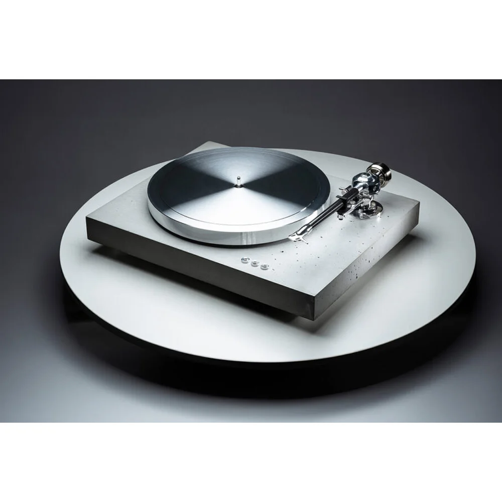 Алюминиевая пластина весом 5,2 кг установлена на полностью алюминиевую дополнительную пластину весом 900 г. Массивный перевернутый основной подшипник гарантирует бесшумное воспроизведение с точными скоростями. В подшипниковом узле массой 1,8 кг используется шпиндель из полированной нержавеющей стали с керамическим шариком наверху. Керамический шарик используется сверху, поскольку он очень твердый и инертный. Это, в сочетании с тефлоновой пластиной в качестве несущего зеркала, также является хорошим демпфирующим устройством. Точная посадочная поверхность из тефлона обеспечивает идеально плавное движение без какого-либо грохота.
