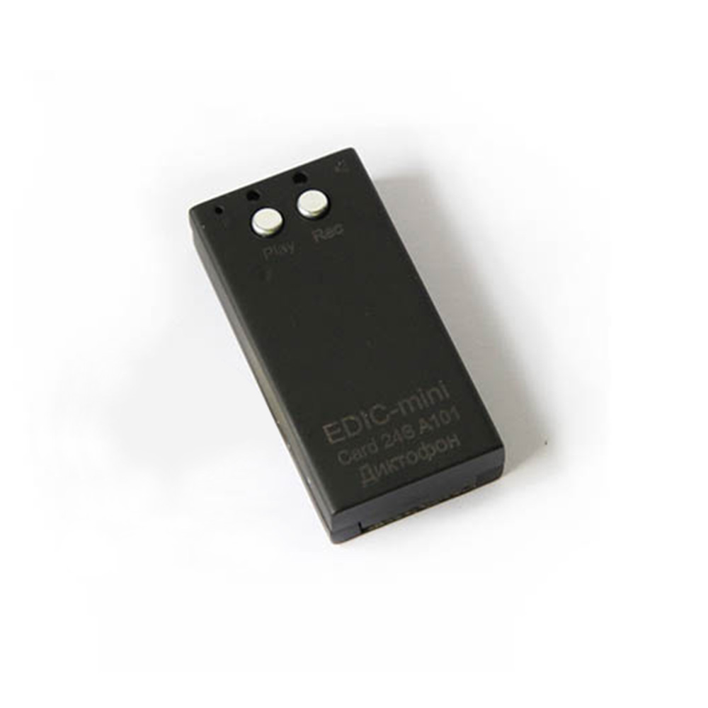 Первым в семействе выпускается модель Edic-mini Card24S A101. Главное достоинство А101-это качество записи, в диктофоне 2 встроенных цифровых MEMS микрофона, позволяют производить запись в стерео формате в качестве 24 бита 32 кГц для каждого канала, в максимально чистом звуковом формате wav.