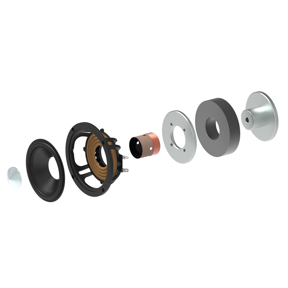 Большая звуковая катушка, среднечастотный басовый динамик с длинным ходом Мембрана из высокопрочного армированного алюминиевого сплава, звуковая катушка диаметром 30 мм, крупный ферритовый магнит и настройка с использованием электроакустической системы анализа KLIPPEL обеспечивают превосходное воспроизведение средних частот и мощное расширение басов. Кронштейн из цельнолитого алюминия обеспечивает надежную поддержку басового динамика. Специально обработанная диафрагма из алюминиевого сплава обладает исключительной прочностью, эффективно снижая разделение вибраций и обеспечивая точное воспроизведение звуковых деталей.