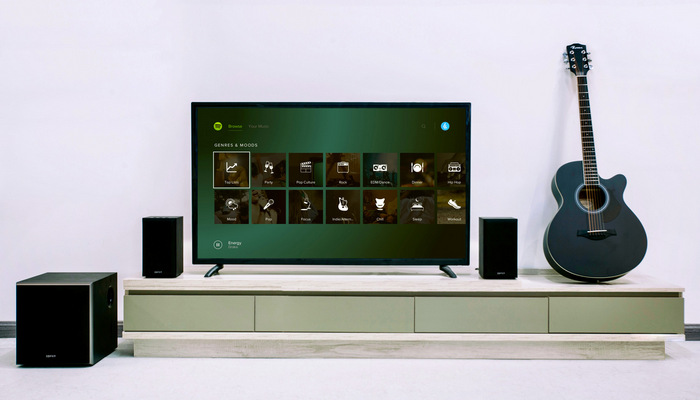 - универсальные возможности подключения: линейный вход, AUX, оптический, коаксиальный, Bluetooth;