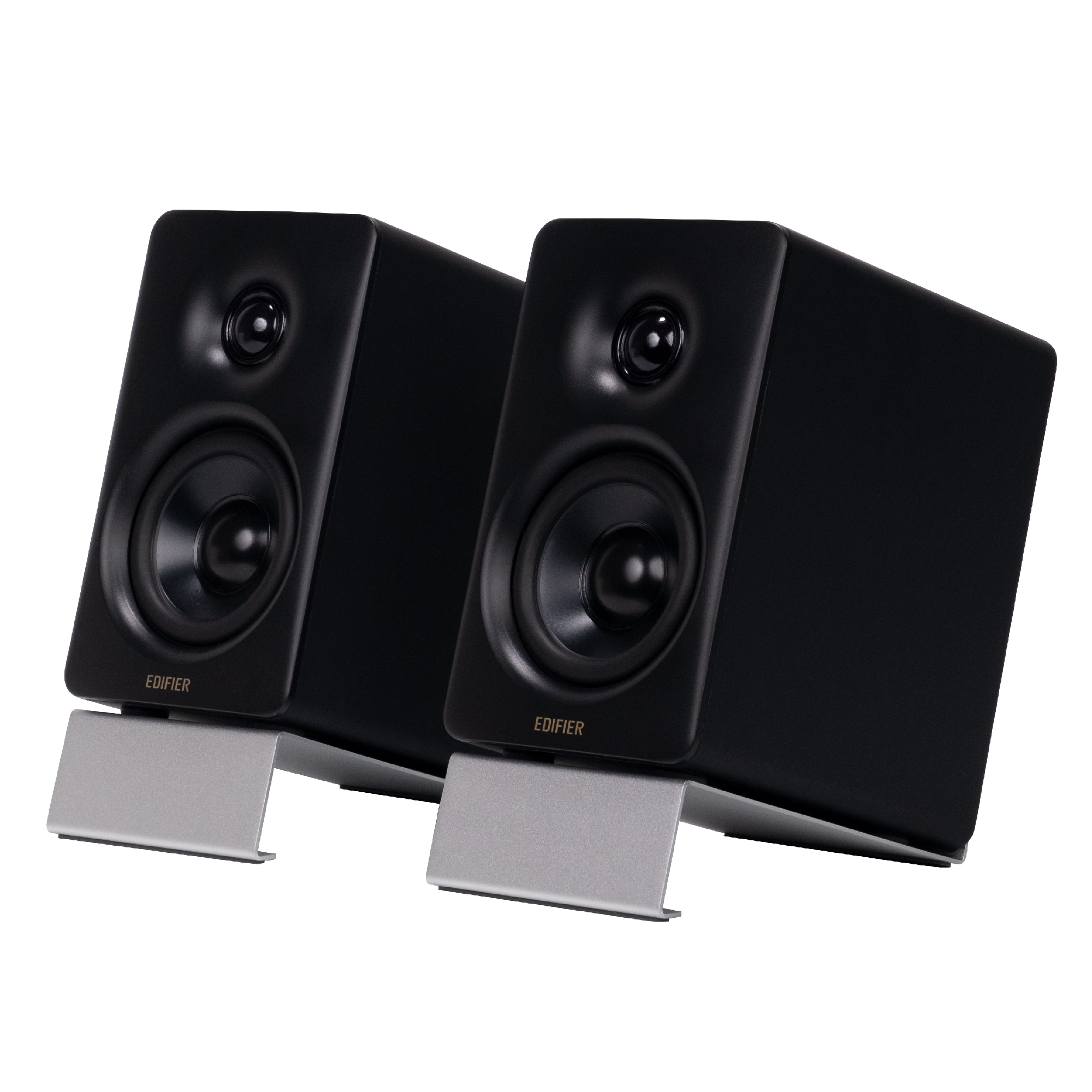 Качество материалов исключительное, каждая колонка весит чуть более 3 кг и выглядит премиально. Подставки для динамиков наклоняют их на 50°, направляя звук на уровень ушей, сводя к минимуму отражения от рабочего стола.