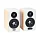 Скандинавский дизайн на контрасте матовой, молочно-белой, фронтальной поверхности, сложной формы боковые поверхности визуально рассечены тремя горизонтальными линиями, черные диффузоры динамиков со стальными “пулями” создают изысканно простой притягивающий взгляд образ.