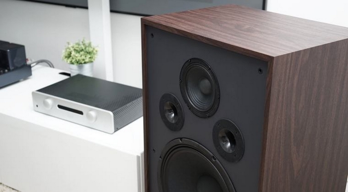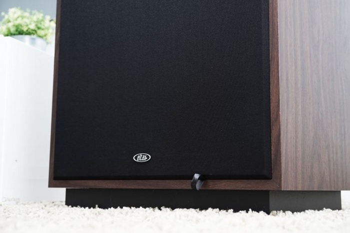Наконец, над двумя твитерами расположен 6-дюймовый среднечастотный динамик из целлюлозного волокна. Это размещение не является случайным, так как оно позволяет оптимизировать фазу и, следовательно, лучше воспринимать различные частоты.