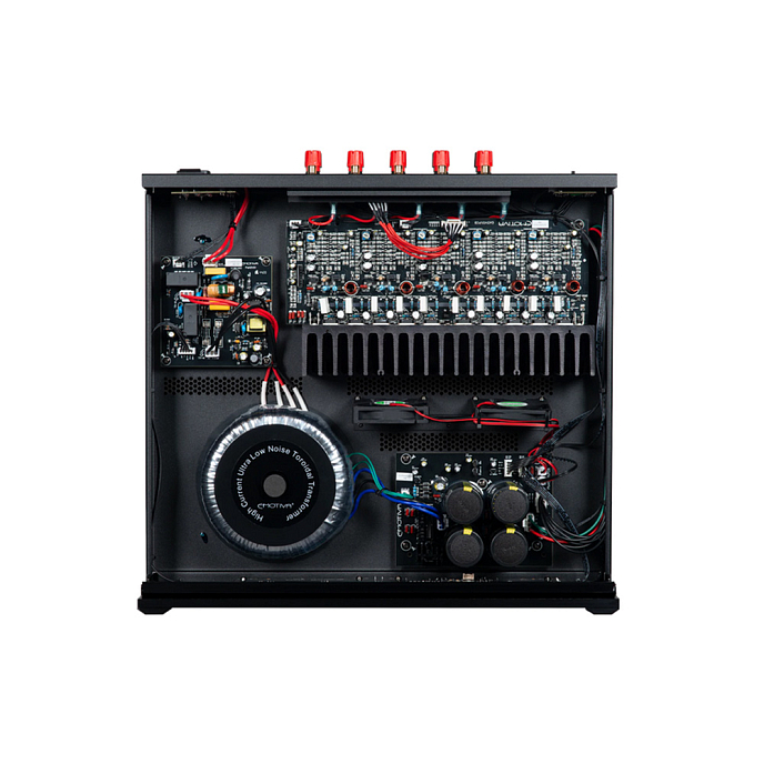- массивный встроенный источник питания с большим тороидальным трансформатором обеспечивает достаточно сильный ток, чтобы раскачать даже сложную акустику;