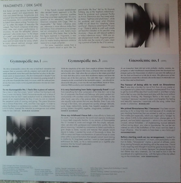 - D2 Kid Francescoli– Gnossienne No. 1 (Rework) 4:28;