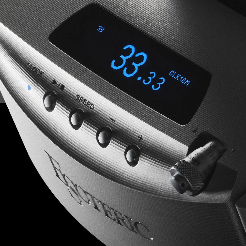 Проигрыватель обладает возможностью синхронизации привода двигателя по тактовой частоте 10 МГц и независимой конфигурацией шасси из трех блоков является кульминацией уникальной философии конструирования Esoteric и механических / электронных технологий.