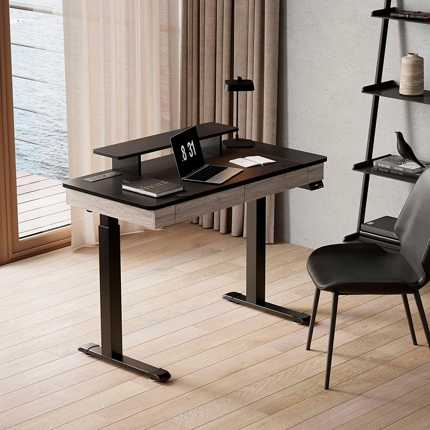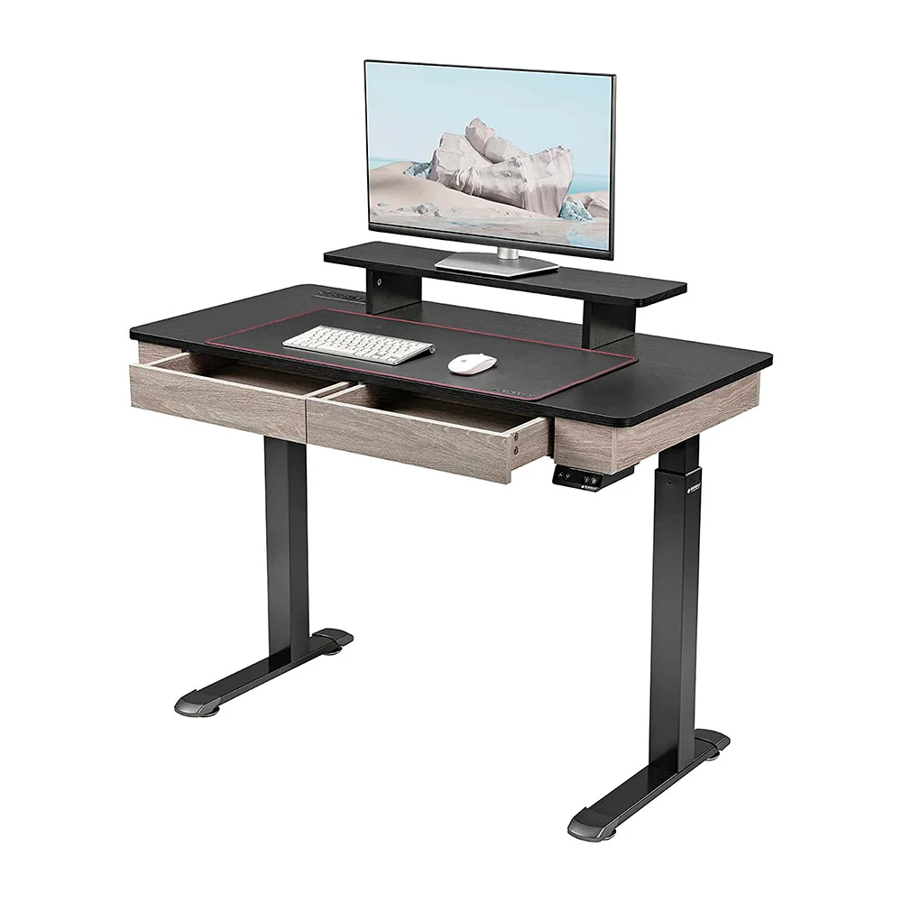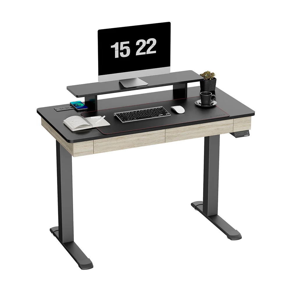 EUREKA ED-I47 — это прочный и устойчивый стол со стальной опорной рамой, в которую встроены электромоторы, что позволяет настраивать высоту столешницы простым нажатием кнопки на пульте управления. Также в стол встроены зарядная станция с беспроводной зарядкой, полка для монитора и два просторных выдвижных ящика. Благодаря специальной системе кабель-менеджмента, на поверхности стола никогда не будет беспорядка из проводов.