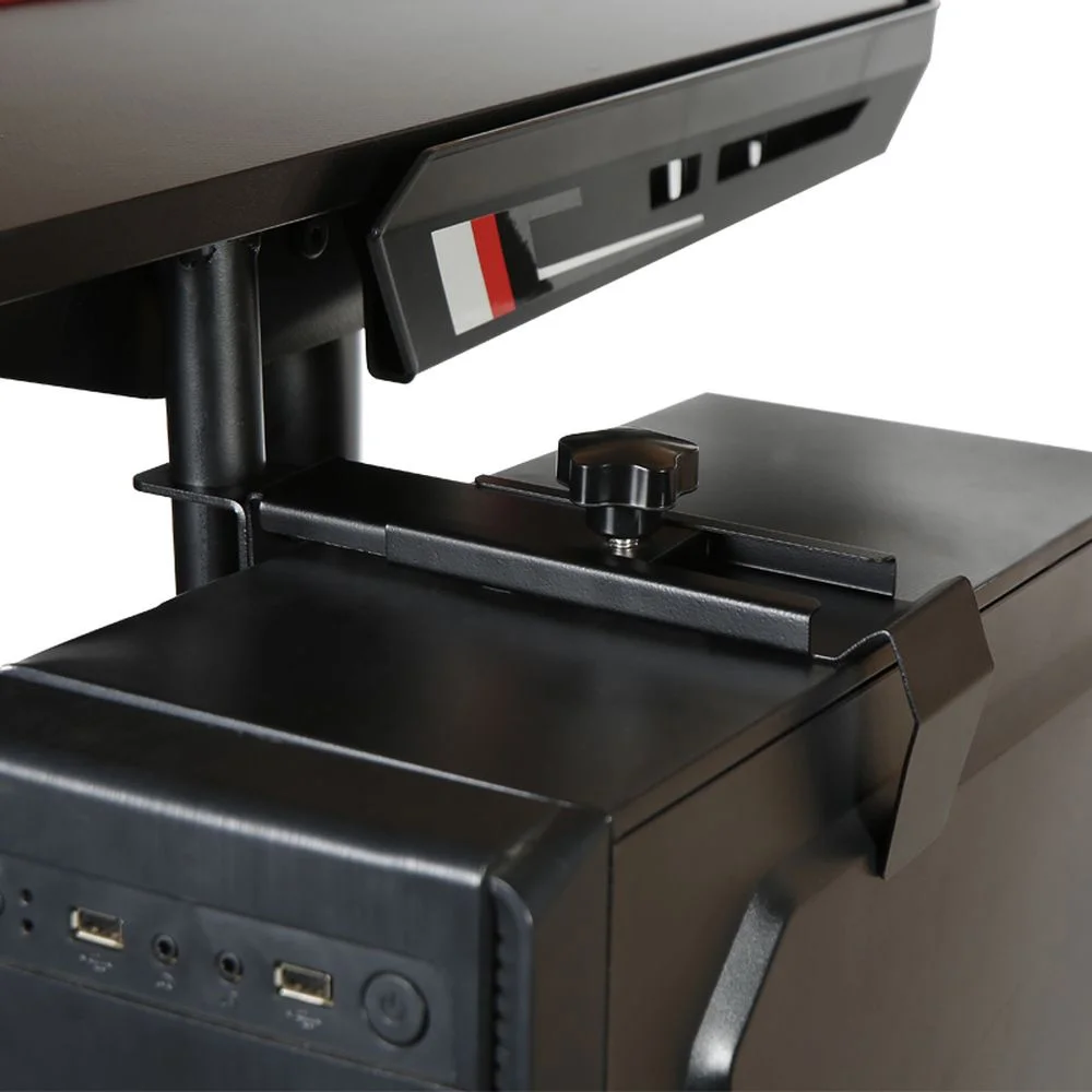 Отдельный держатель для системного блока, который крепится к игровому столу и хорошо фиксирует ваш компьютер на одном месте. В ERK-MCH используется специальный регулятор для настройки высоты и ширины области, в которой и будет размещаться ваш компьютер. Благодаря этому фиксатор подойдет для системных блоков с разными размерами и сможет крепко держать их на своем месте, даже если вы решите передвинуть стол или переместить его в другую комнату. Крепление достаточно просто присоединяется к деревянным поверхностям и металлическим стойкам, а также, сделано из очень качественных материалов, поэтому фиксатор будет служить вам долго и работать исправно.