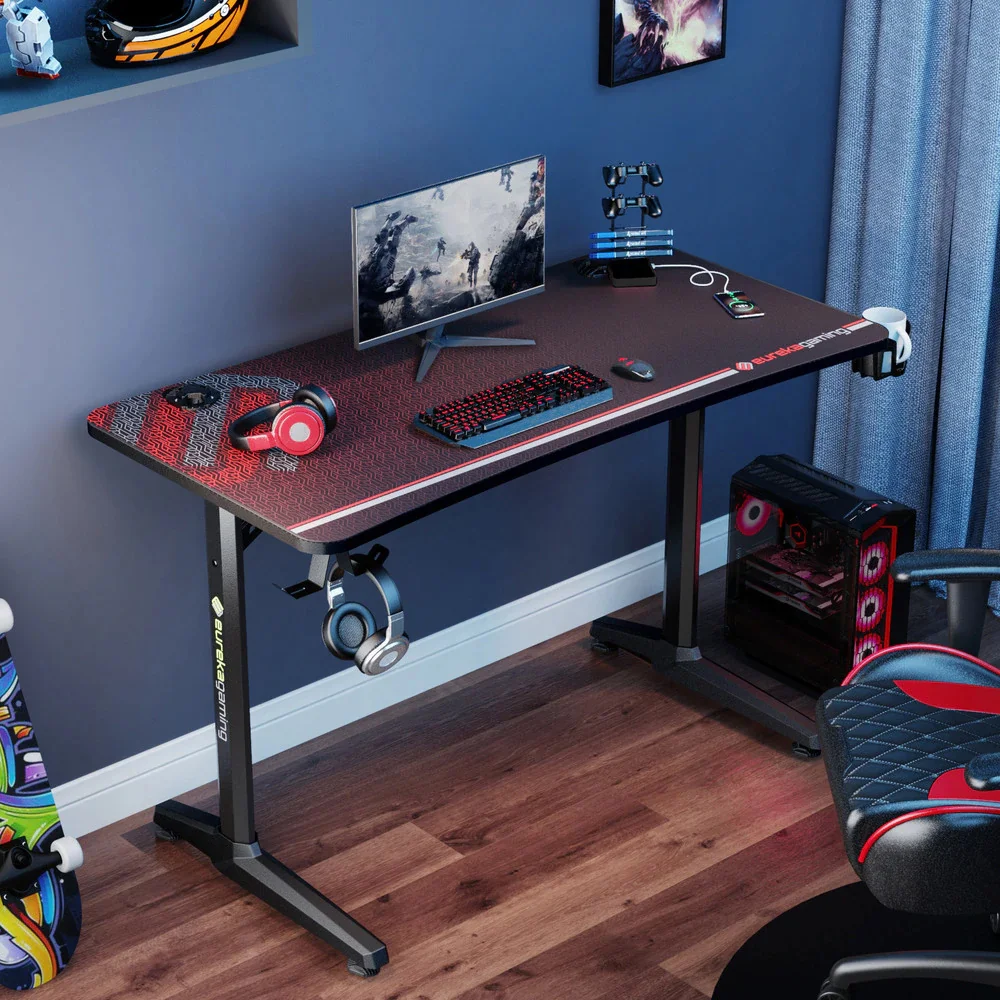 EUREKA GIP 47 - это прочный и устойчивый стол с L-образной опорной рамой и покрытием повторяющем текстуру углеволокна. На нем никогда не будет беспорядка из проводов благодаря специальной системе кабель-менеджмента. Для большего погружения в игровой процесс есть настраиваемая подсветка.