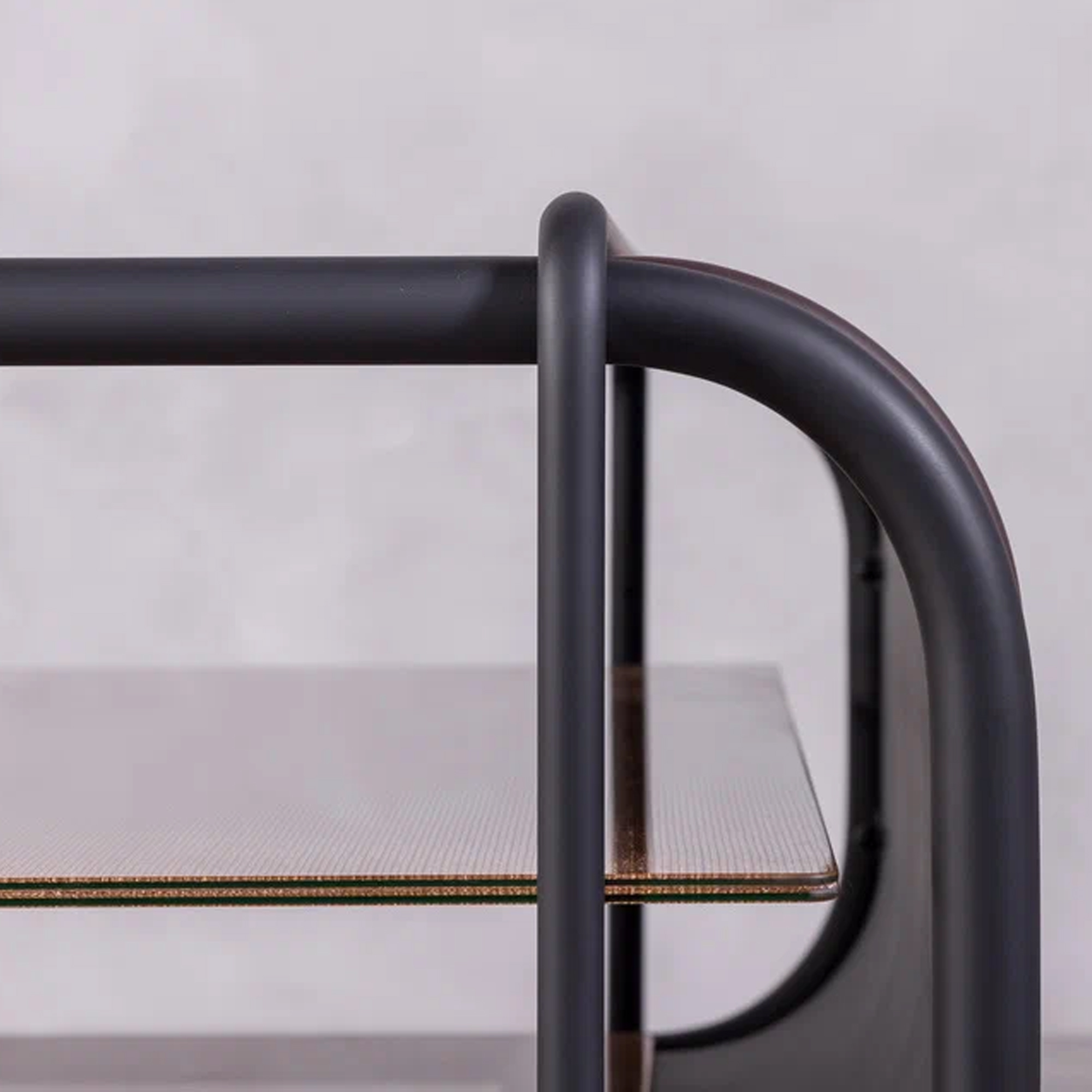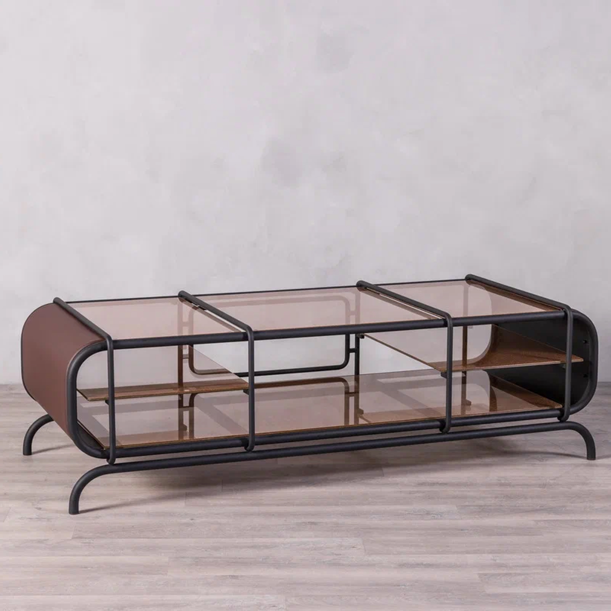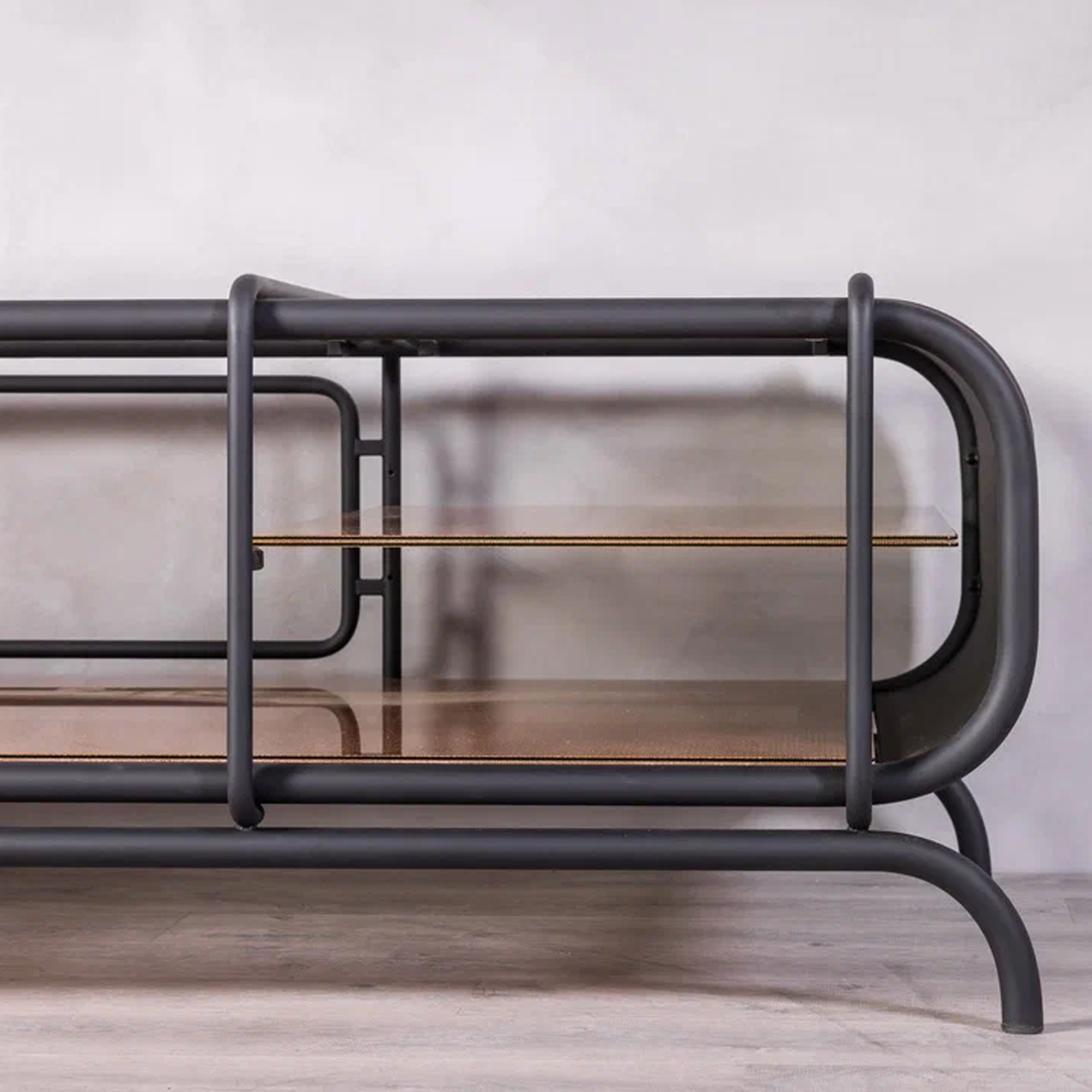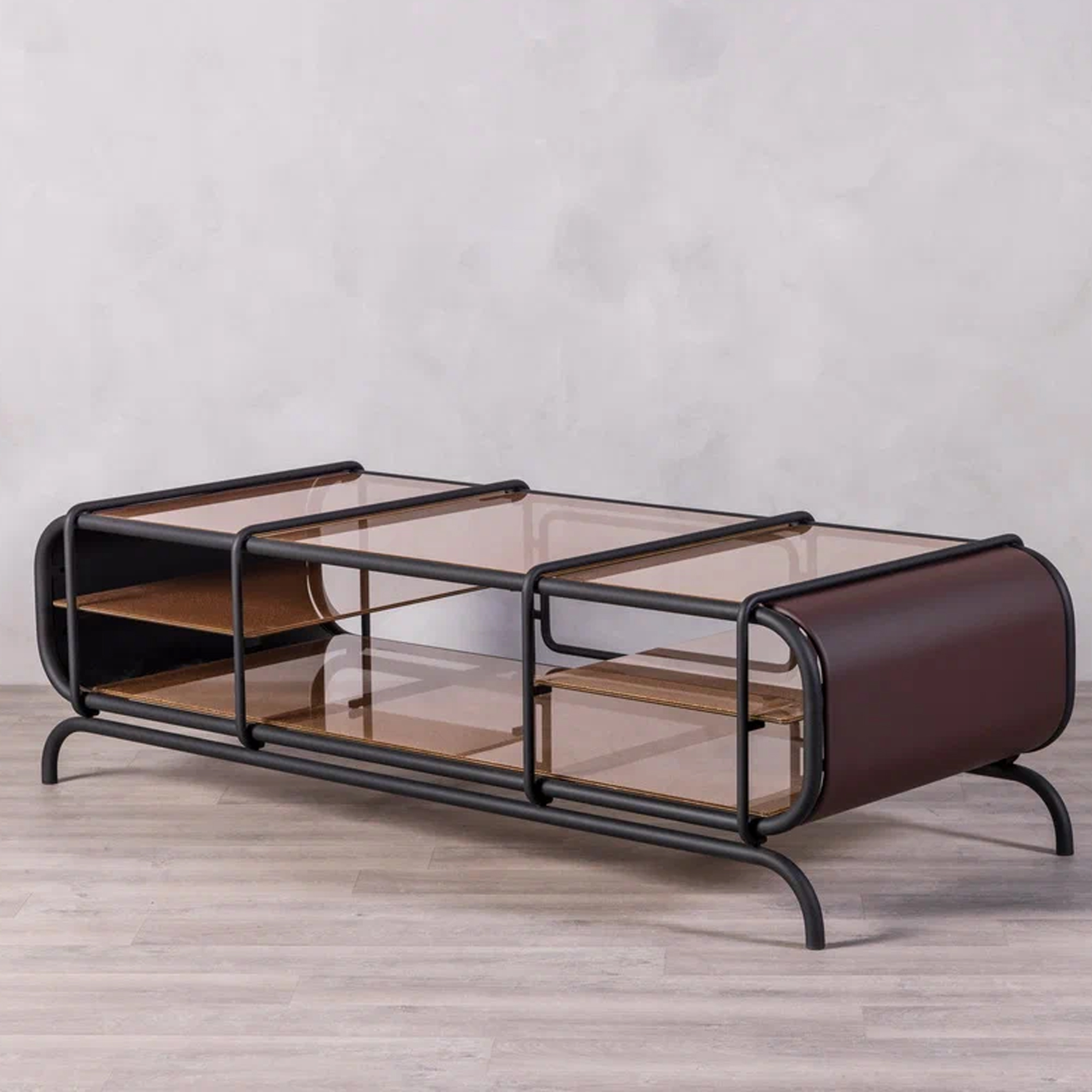 Благодаря инкрустации декоративной сеткой, серые стеклянные элементы создают мягкую игру света. Консоль будет уместной как в минималистичном интерьере, так и в более эклектичной обстановке, становясь эффектным акцентом.