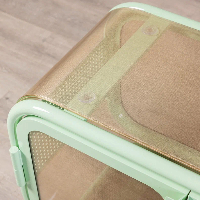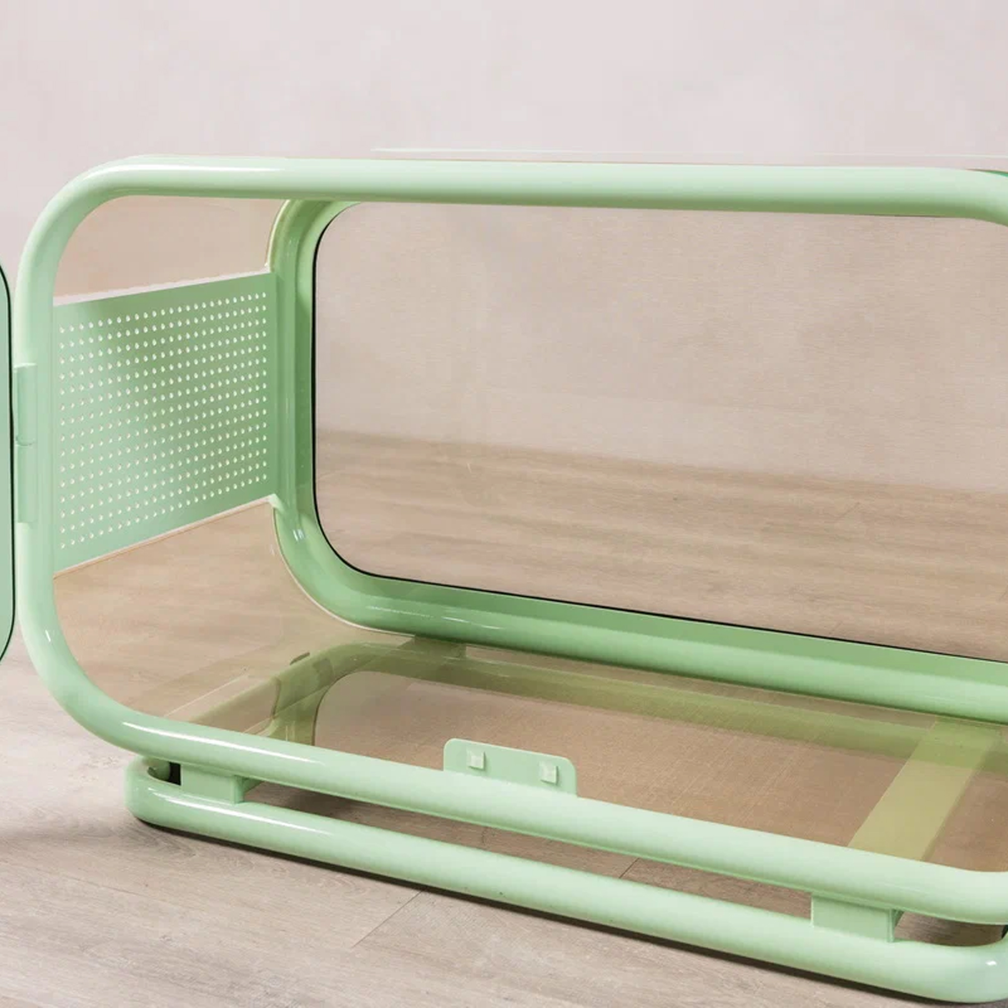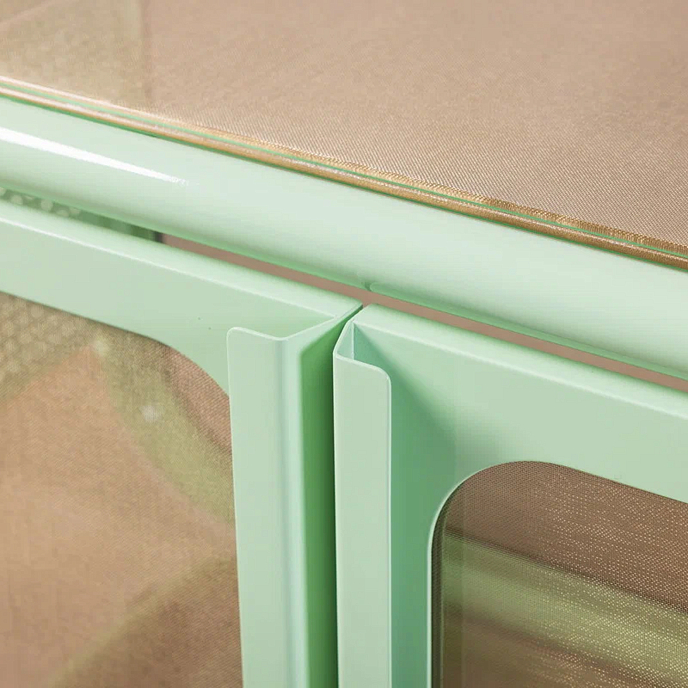 Металлический каркас: прочный контур из металла обеспечивает устойчивость и долговечность конструкции. Перфорация: боковые панели выполнены с перфорацией, что добавляет модели технологичности и легкости. Полупрозрачные армированные стеклянные элементы цвета золото, инкрустированные декоративной сеткой, создают мягкую игру света и придают форме воздушность.