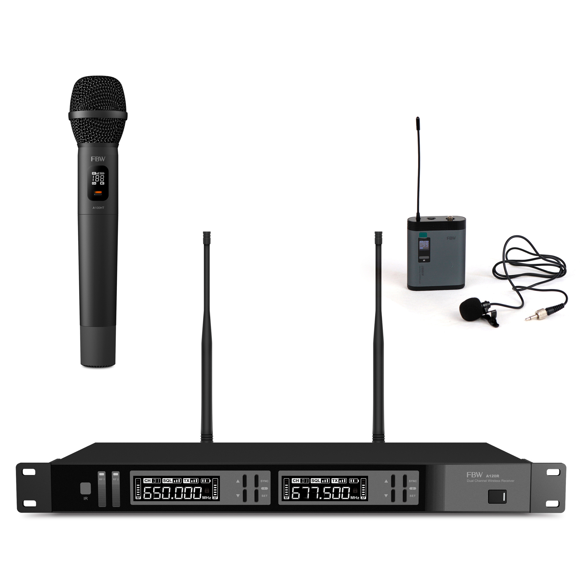 Двухканальный радиоприёмник FBW A120R является базовым устройством при построении микрофонных радиосистем различного назначения. Работает с радиопередатчиками компании FBW (A100BT, A100CT, A100HT и A101HT) или иных производителей, при условии обмена данными на тех же несущих радиочастотах (UHF диапазон 470МГц - 960МГц, задается 100 фиксированных частот) и возможности синхронизации приемника с передатчиком посредством ИК-порта. Тип модуляции принимаемого от радиопередатчика акустического сигнала - FM (частотная).