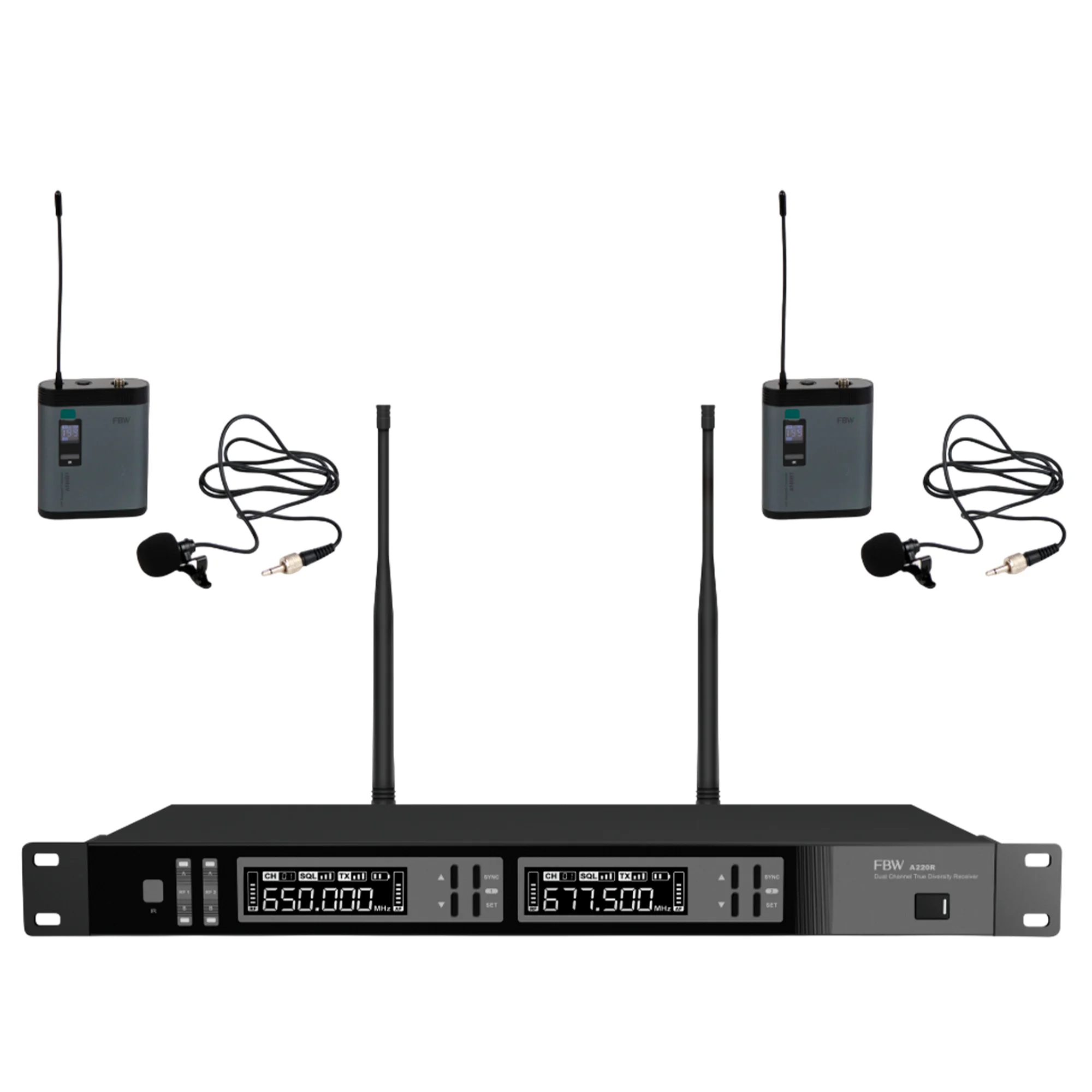 Двухканальный диверситивный радиоприёмник FBW A220R является базовым устройством при построении микрофонных радиосистем различного назначения. Работает с радиопередатчиками компании FBW (A100BT, A100CT, A100HT и A101HT) или иных производителей, при условии обмена данными на тех же несущих радиочастотах (UHF диапазон 470МГц - 960МГц, задается 100 фиксированных частот) и возможности синхронизации приемника с передатчиком посредством ИК-порта. Тип модуляции принимаемого от радиопередатчика акустического сигнала - FM (частотная).