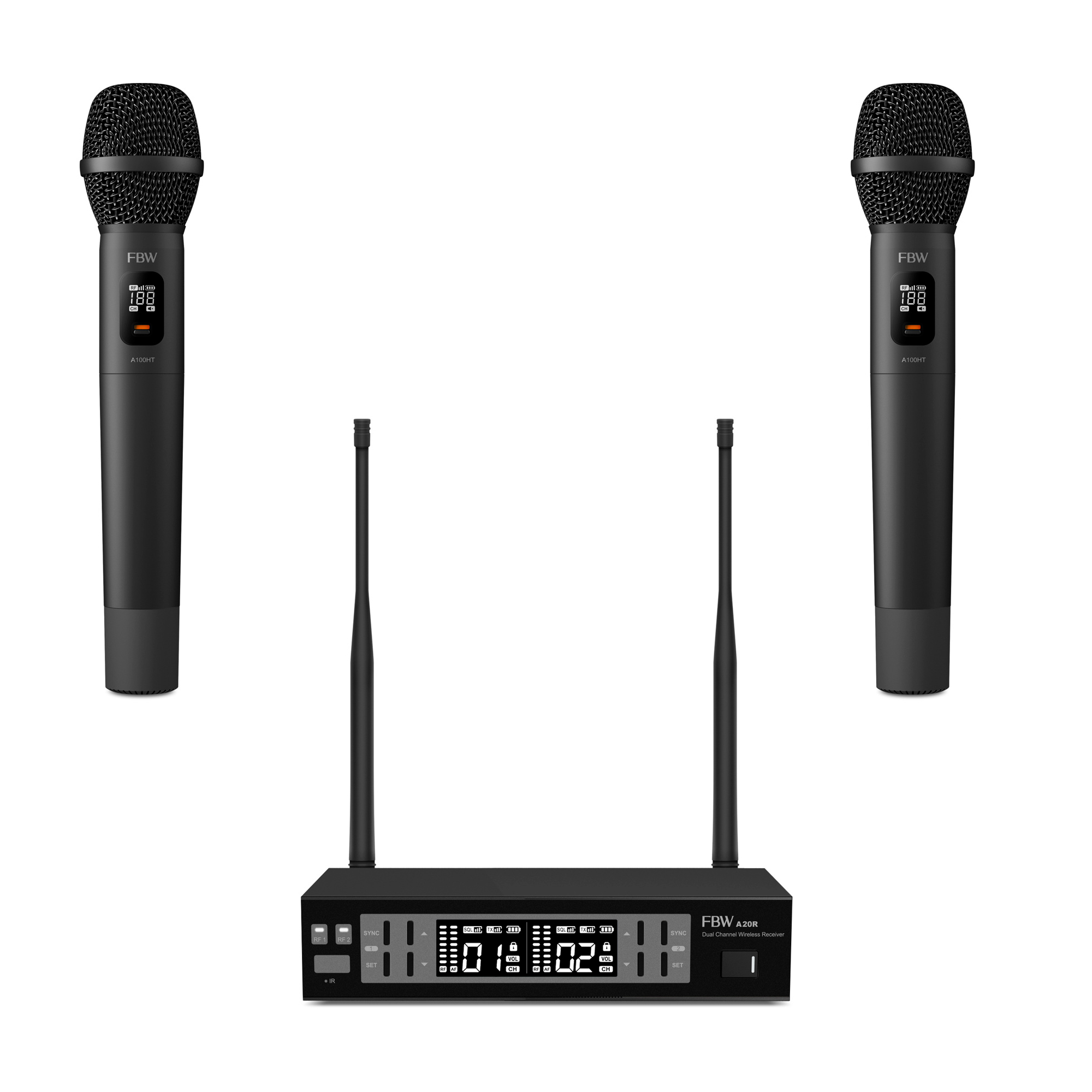 Двухканальный радиоприёмник FBW A20R является базовым устройством при построении микрофонных радиосистем различного назначения. Работает с радиопередатчиками компании FBW (A100BT, A100CT, A100HT и A101HT) или иных производителей, при условии обмена данными на тех же несущих радиочастотах (UHF диапазон 470МГц - 960МГц, задается 100 фиксированных частот) и возможности синхронизации приемника с передатчиком посредством ИК-порта. Тип модуляции принимаемого от радиопередатчика акустического сигнала - FM (частотная).