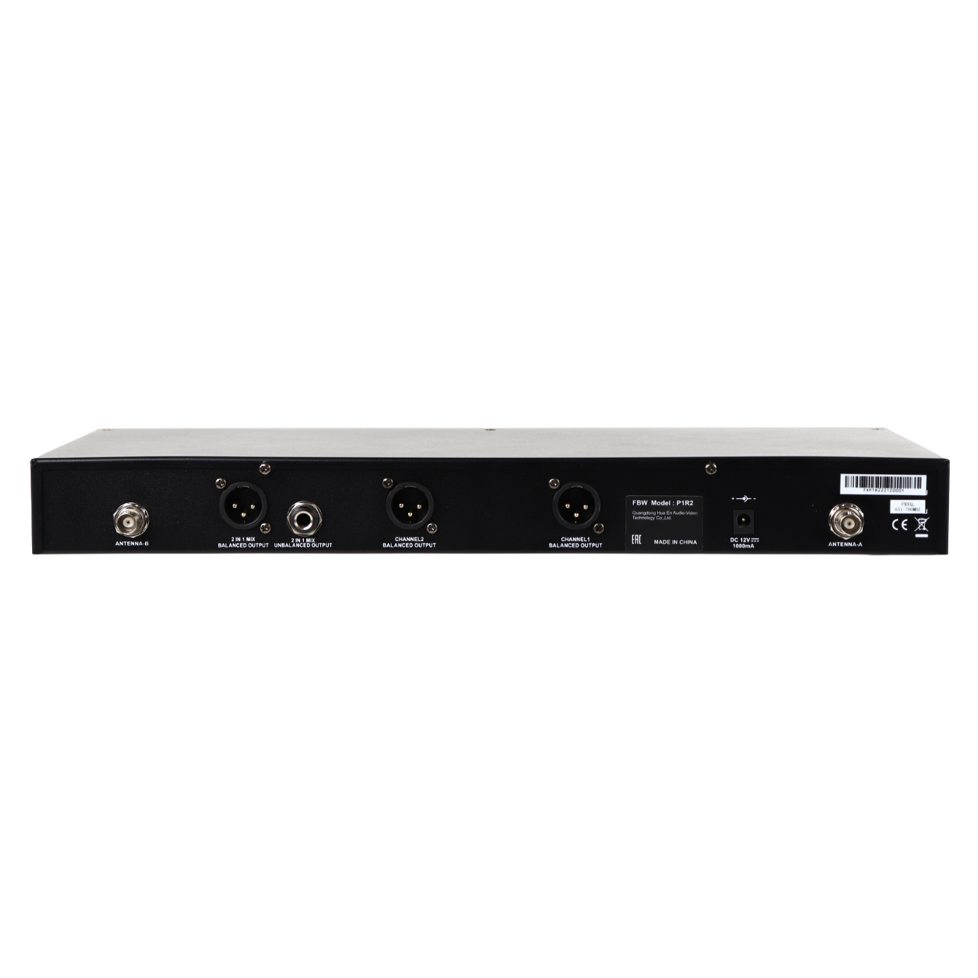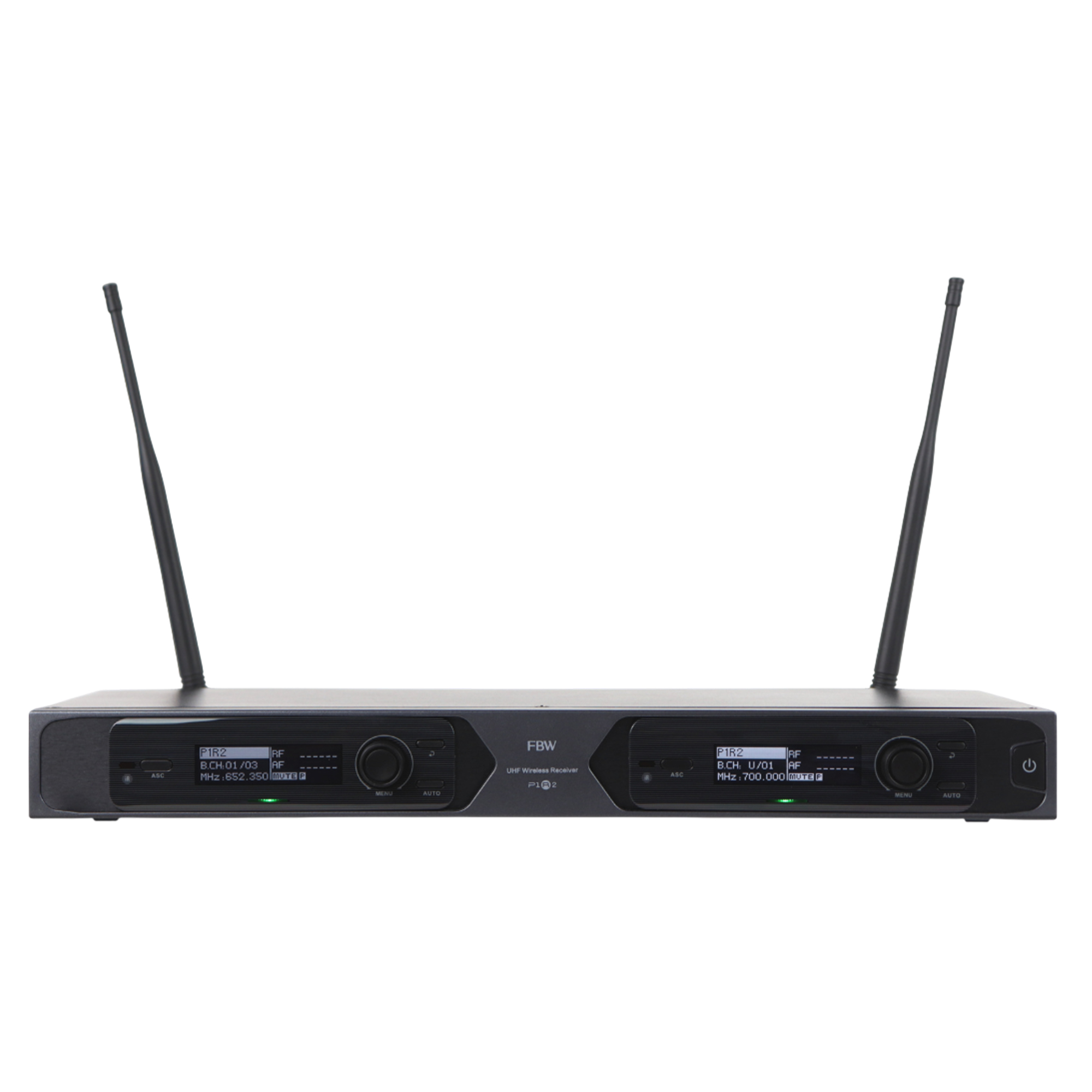 Двухканальный радиоприёмник FBW P1R2 является базовым устройством при построении микрофонных радиосистем различного назначения. Работает с радиопередатчиками компании FBW (P1B и P1H) или иных производителей, при условии обмена данными на тех же несущих радиочастотах (UHF диапазон 651МГц - 700МГц, задается до 1680 частотных каналов) и возможности синхронизации приемника с передатчиком посредством ИК-порта. Тип модуляции принимаемого от радиопередатчика акустического сигнала - FM (частотная).