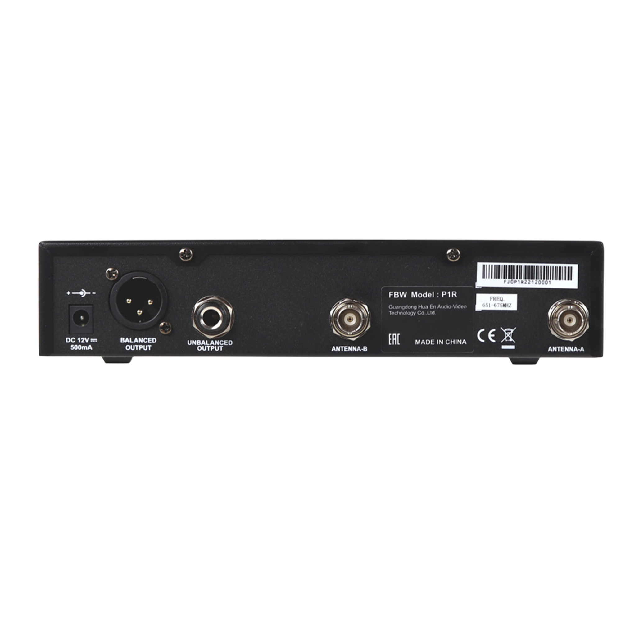 Одноканальный радиоприёмник FBW P1R является базовым устройством при построении микрофонных радиосистем различного назначения. Работает с радиопередатчиками компании FBW (P1B и P1H) или иных производителей, при условии обмена данными на тех же несущих радиочастотах (UHF диапазон 651МГц - 675МГц, задается до 1680 частотных каналов) и возможности синхронизации приемника с передатчиком посредством ИК-порта. Тип модуляции принимаемого от радиопередатчика акустического сигнала - FM (частотная).