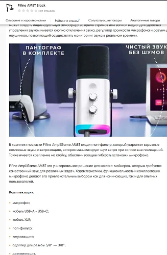Fifine AmpliGame AM8T это универсальное решение для контент-мейкеров, которым требуется качественный звук для различных задач. Характеристики, функциональность и комплектация микрофона делают его привлекательным выбором как для начинающих, так и для опытных пользователей.