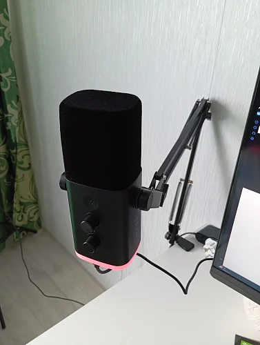 Fifine AmpliGame AM8T обладает многофункциональностью. Помимо стандартного подключения USB-A, он оснащен разъемом XLR, который открывает возможности использования профессионального аудиооборудования. Микрофон имеет встроенную RGB-подсветку, которая может создать индивидуальную атмосферу во время стримов или записи видео. Для удобства управления звуком имеется кнопка отключения звука, регулятор громкости микрофона и разъем для наушников, позволяющий осуществлять мониторинг звука в реальном времени.