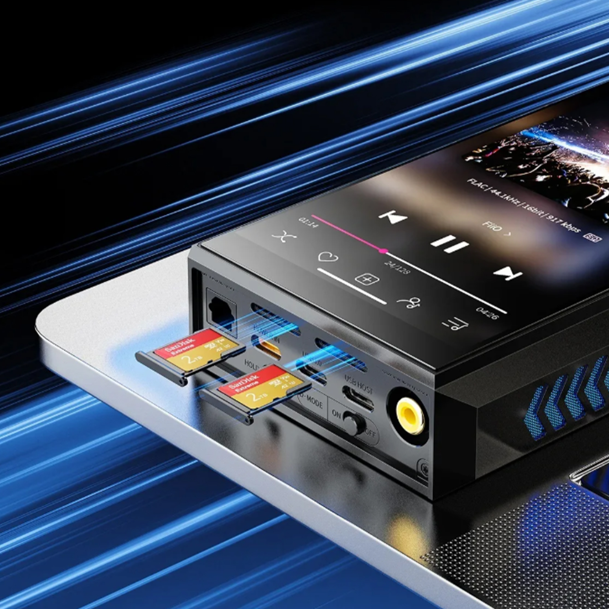 Беспроводные возможности реализованы на чипе Qualcomm QCC5181 с поддержкой Bluetooth 5.4 и передовых кодеков, включая aptX Lossless, LDAC и LE Audio, что обеспечивает передачу звука без потерь даже без проводов. Плеер также поддерживает продвинутую платформу искусственного интеллекта Dragonwing для глобальной обработки звука, включая 31-полосный параметрический эквалайзер и функцию All-to-DSD.