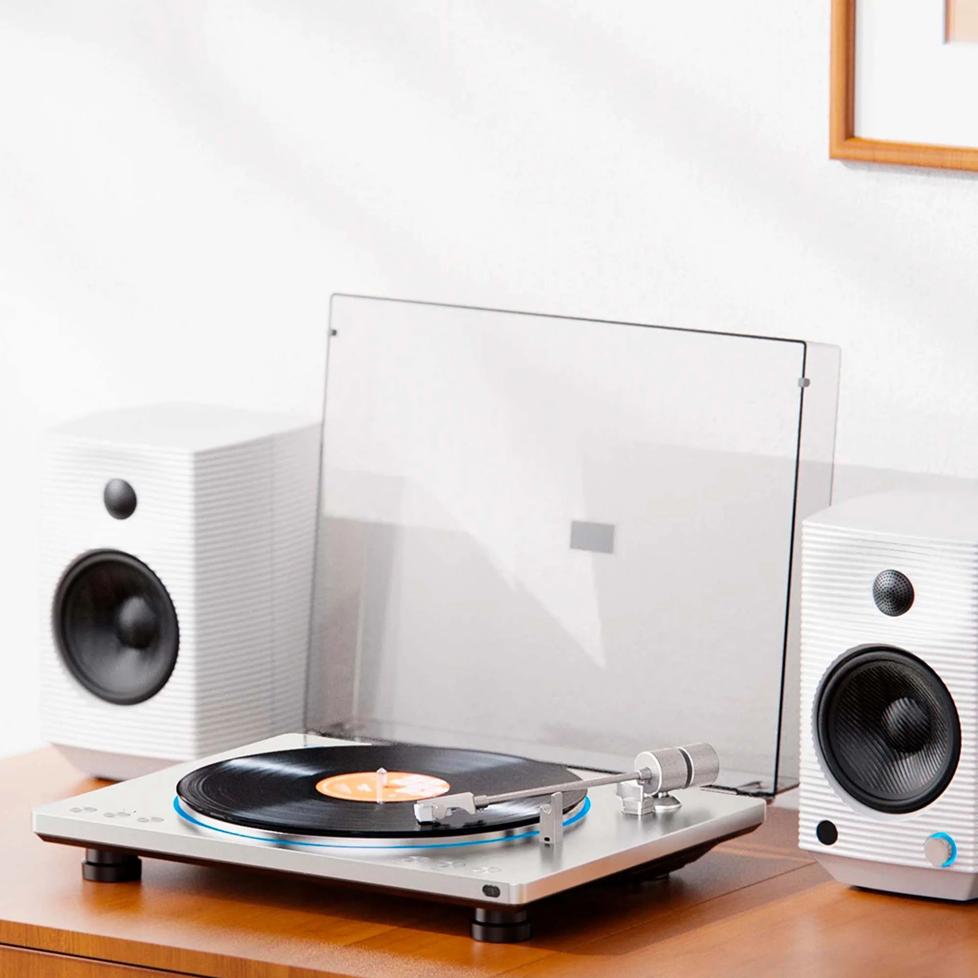 TT13 BT имеет встроенный фонокорректор, что делает его готовым к подключению к любому усилителю или аудиосистеме без дополнительных устройств. Таким образом, вы можете наслаждаться музыкой с винила сразу после распаковки устройства. Проигрыватель оснащен съемной головкой Audio-Technica AT3600LA, позволяющей заменять стилусы для настройки звучания в соответствии с вашими предпочтениями. Устройство также имеет встроенный контроль антискейтинга для минимизации искажений при воспроизведении.