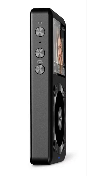 FiiO X1 является младшей моделью в каталоге FiiO, но сохранил многие черты более дорогих аппаратов фирмы. В первую очередь это алюминиевый корпус с качественной отделкой и точной подгонкой всех деталей. Размеры аппарата составляют 57 х 96 х 14 мм и при весе в 106 грамм его довольно удобно носить в кармане. На передней панели проигрывателя расположен TFT-дисплей с диагональю 2 дюйма и разрешением 320 х 240 пикселей, пользоваться которым очень удобно. Под дисплеем находится поворотное кольцо, по четырем сторонам которого расположены металлические кнопки управления основными функциями.